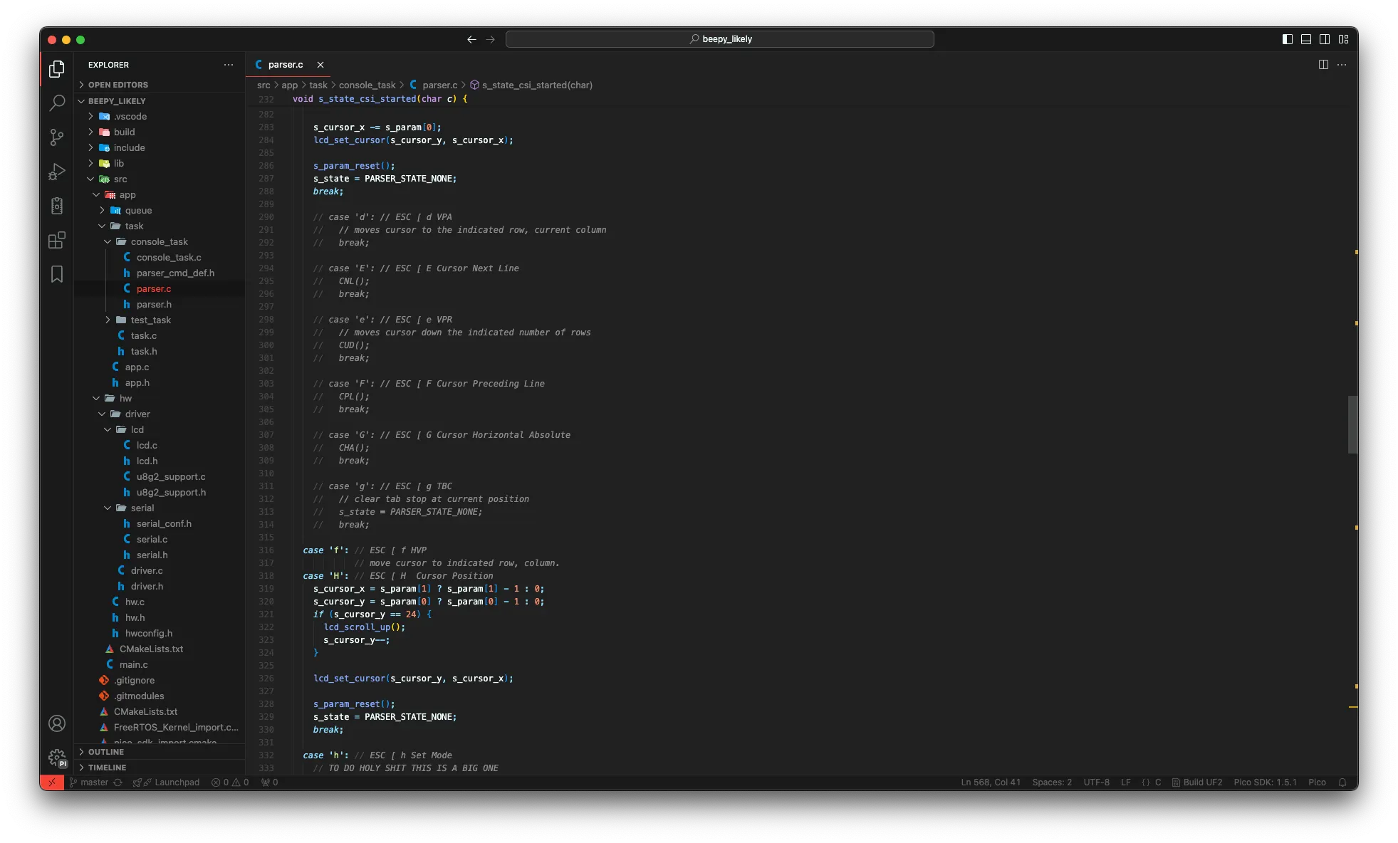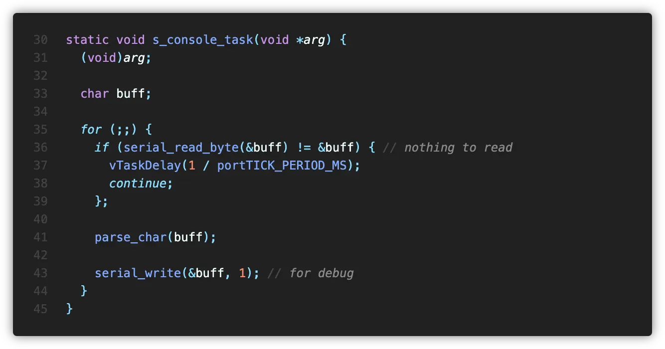 터미널을 처리하는 task를 하나 만들어 UART로 데이터가 들어올 때 마다 파서에 집어넣도록 했습니다.