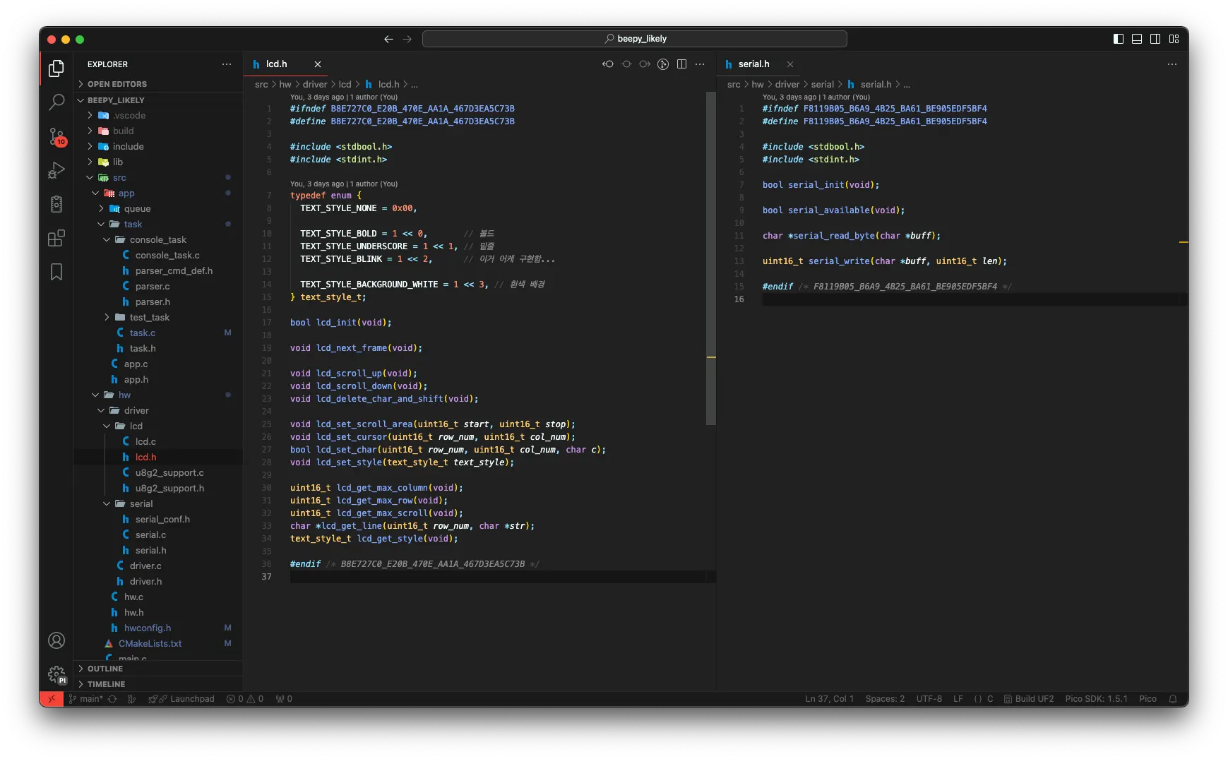이전 포스팅에서 만들어둔 LCD 드라이버에 몇몇 기능을 추가하고, DMA 기반 UART 드라이버를 만들었습니다.