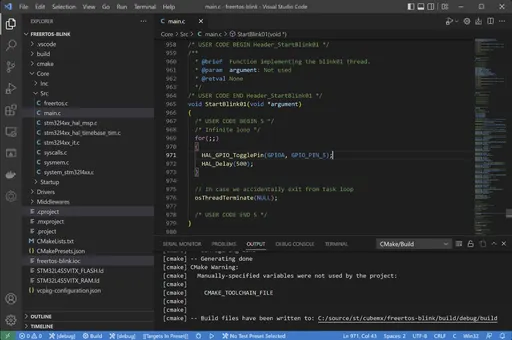 아직 CMake에 익숙하지 않아 당분간은 빌드 옵션을 변경하는 등의 과정에서 CubeIDE를 여전히 사용하긴 해야 할 것 같습니다. 그래도 코드 작성은 물론 디버깅까지 잘 되니 CubeIDE 때문에 고통받을 일은 없을 것 같네요.