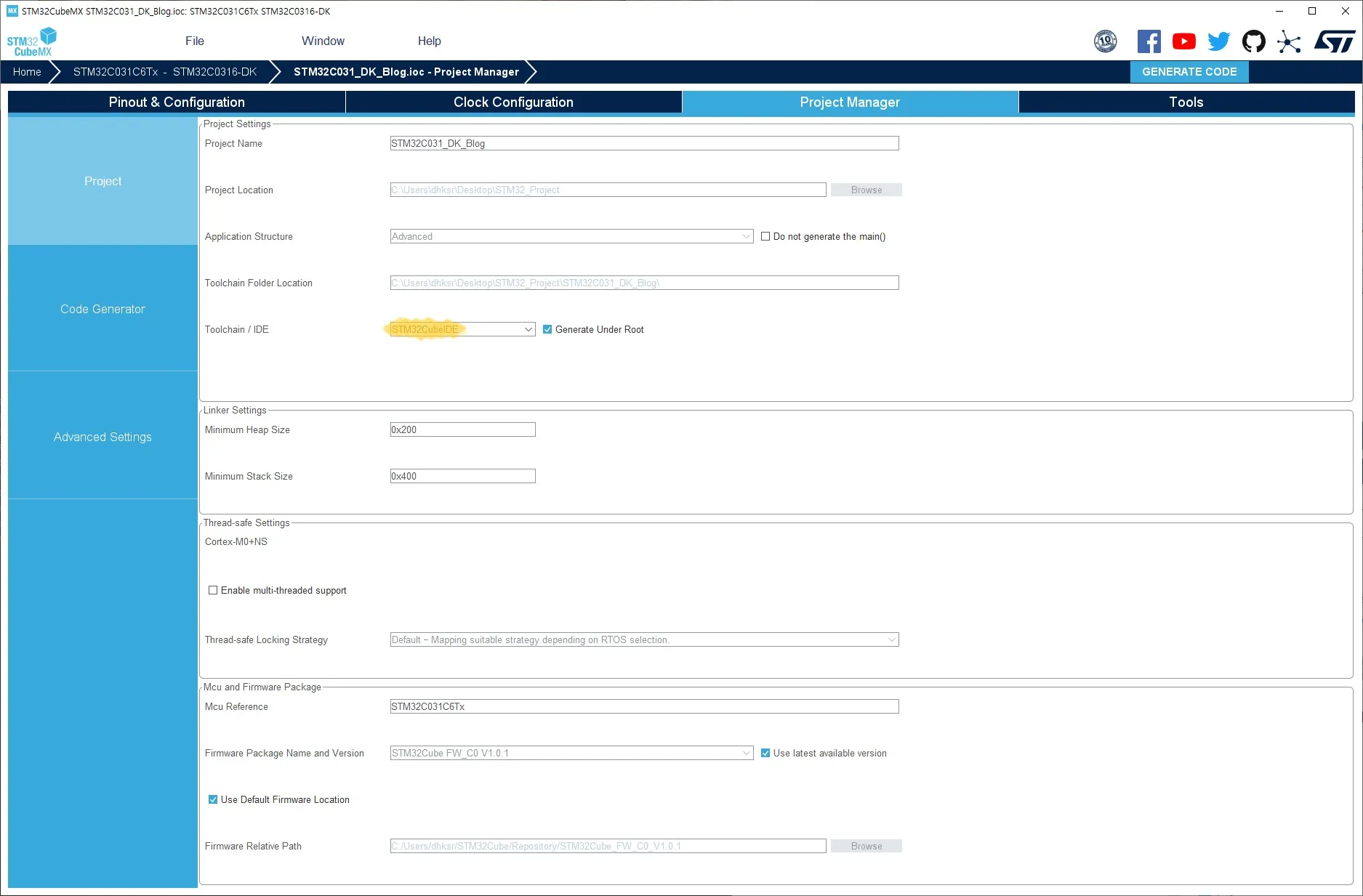 STM32CubeMX - 권장