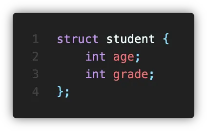 예를 들어, 나이와 학년을 담는 조구체를 정의하면 위의 왼쪽과 같습니다. 이렇게 만들어진 구조체는 오른쪽 사진과 같이 메모리에 저장됩니다.
