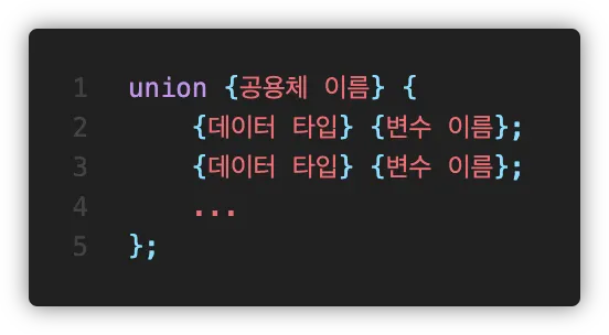 공용체는 다음과 같은 형식으로 정의됩니다.