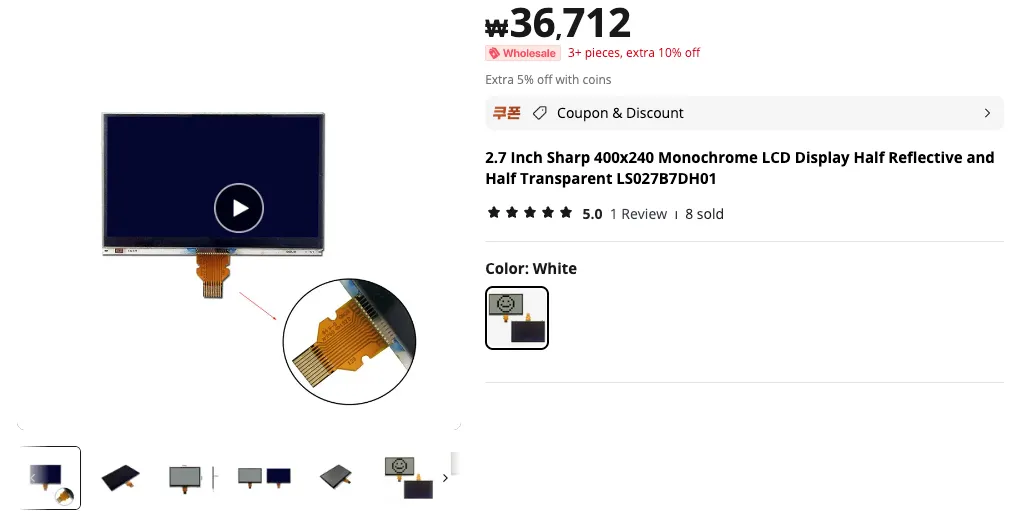 알리익스프레스에서 Beepy의 디스플레이와 동일한 Sharp LS027B7DH01를 구매했습니다.