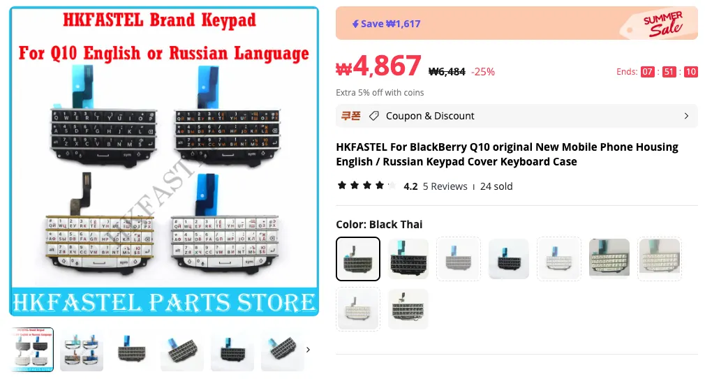 대충 Blackberry Keyboard라 검색해 나온 Q10 키보드를 구매했습니다.