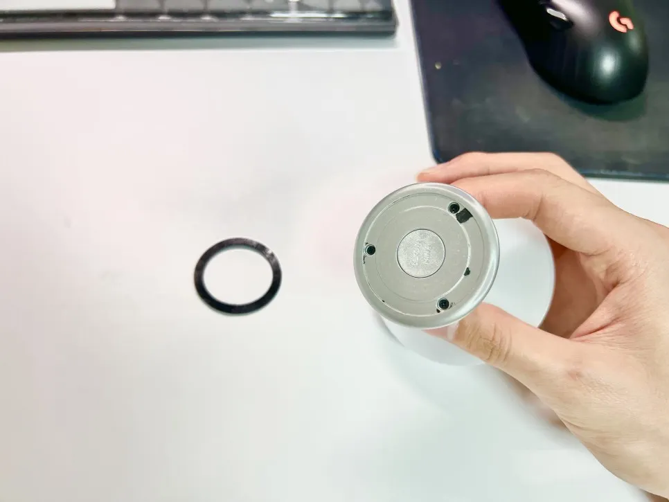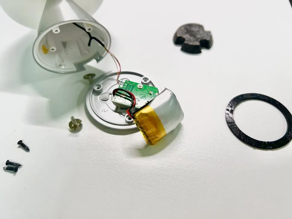 생각보다 분해는 쉬웠습니다. 뒤쪽의 미끄럼 방지 패드를 제거했더니 나사 3개가 보였고 풀어주니 바로 회로가 튀어나왔습니다. 크기 치고 묵직한 편이라 알루미늄 외장이 두껍다고 생각했었는데요, 알고 보니 무게 추가 있었습니다.