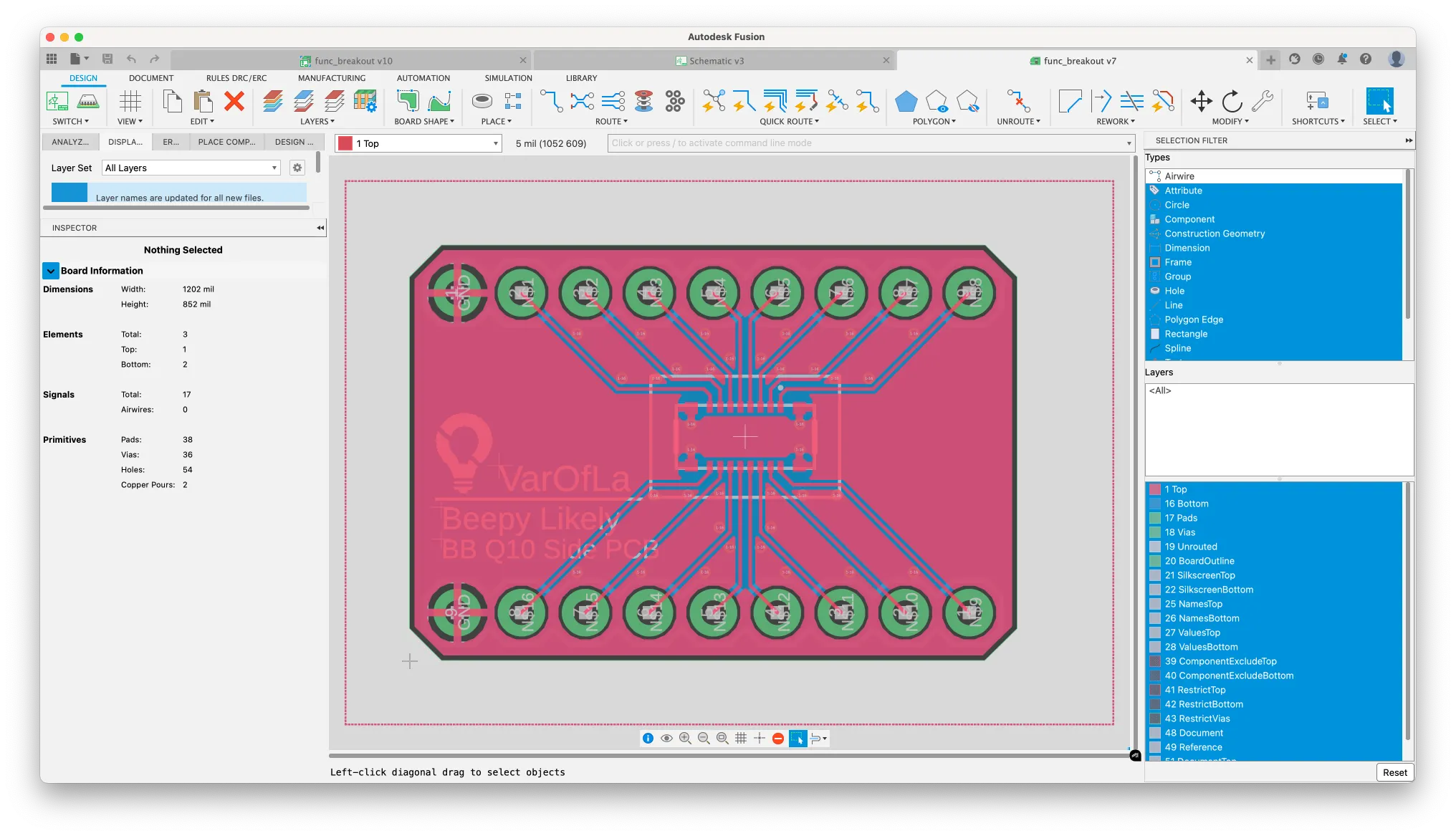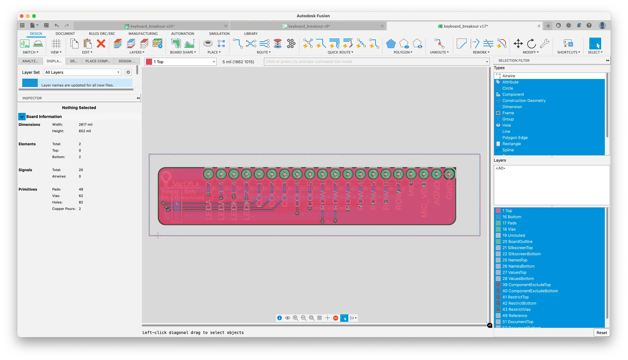 사실 사이드 PCB는 원래 계획에 없었는데요, 키보드 브레이크아웃 보드를 일찌감치 만들어 펌웨어를 만들던 중, 갑자기 “Q10 하드웨어 활용하면 멋질 듯?! → 어? 사이드 PCB가 있네? → 이거 써보자!!” 이런 의식의 흐름으로 끼워 넣어 포스팅이 늦어지게 되었습니다