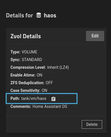 위 커뮤니티 내용을 참고해 ZVOL을 생성하고, OS 이미지를 ZVOL에 끼얹었습니다.