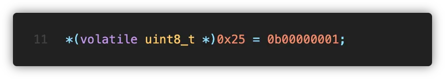 위 코드가 실행된다면 0x25 위치의 메모리 상에 0b00000001 이라는 값을 쓰게 되는데요, 메모리의 0x25 위치에 무엇이 있길레 위 코드가 동작하는것일까요?