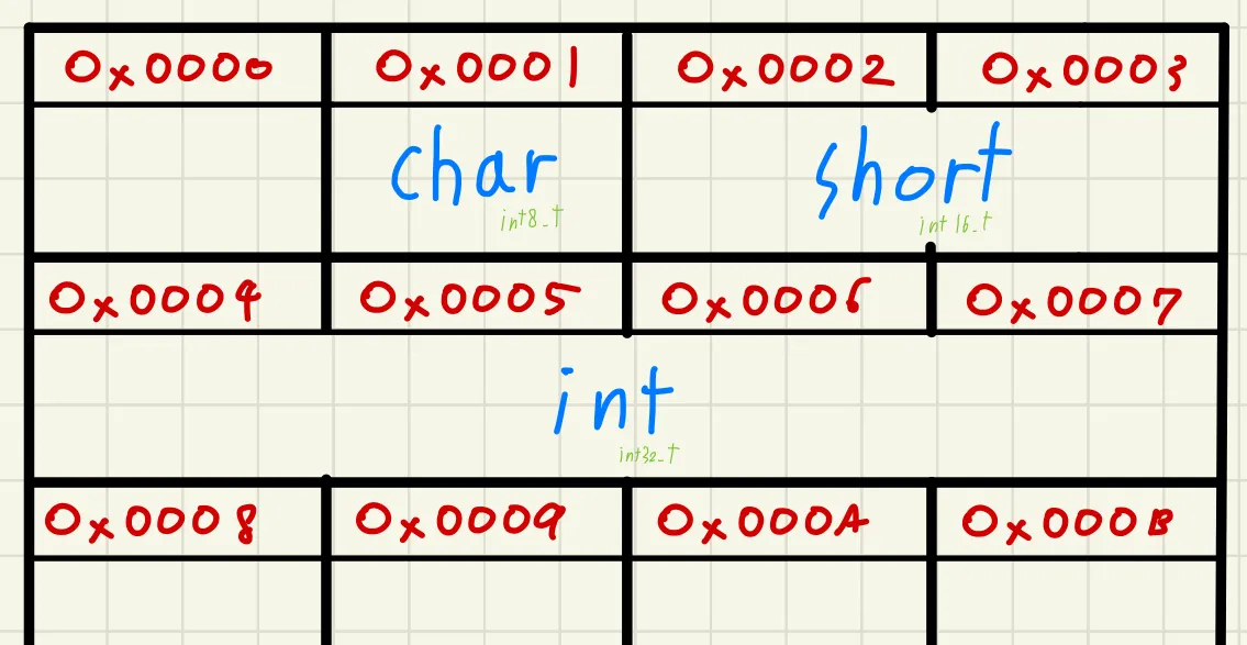 마찬가지로 방을 4개 사용하면 4 byte의 int형, 8개 사용하면 8 btye의 long형이 되는것이죠.
