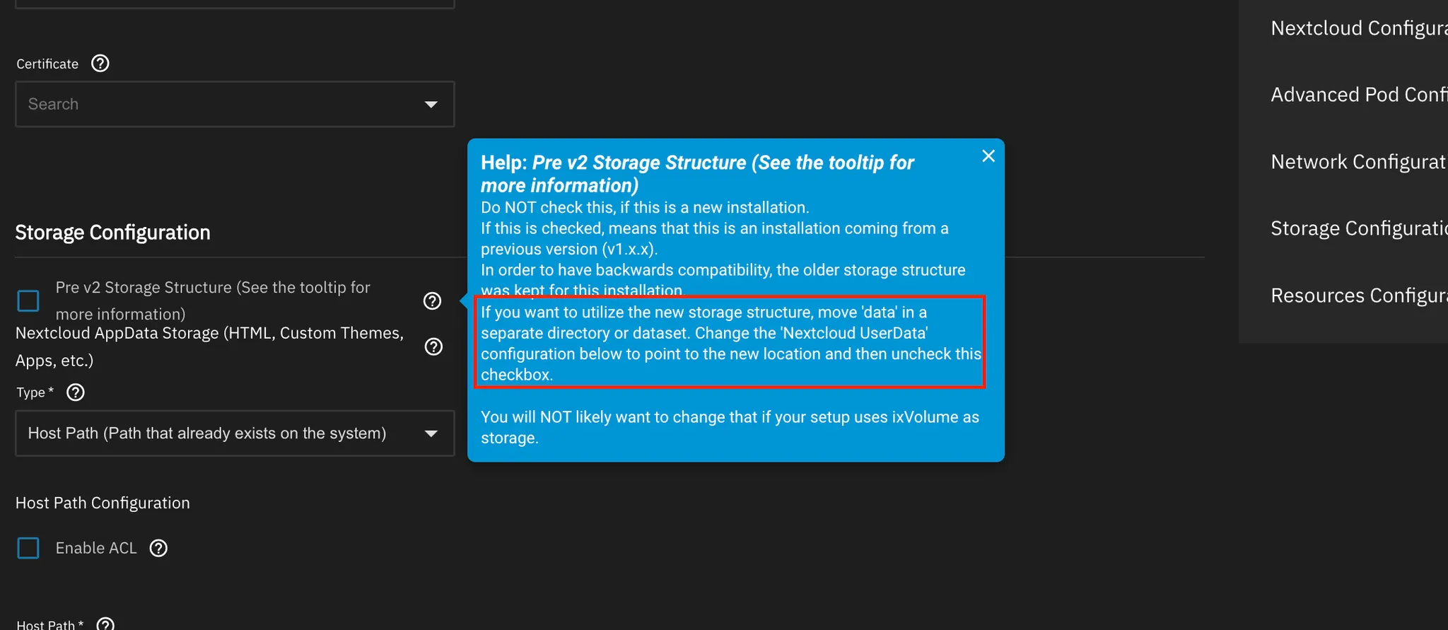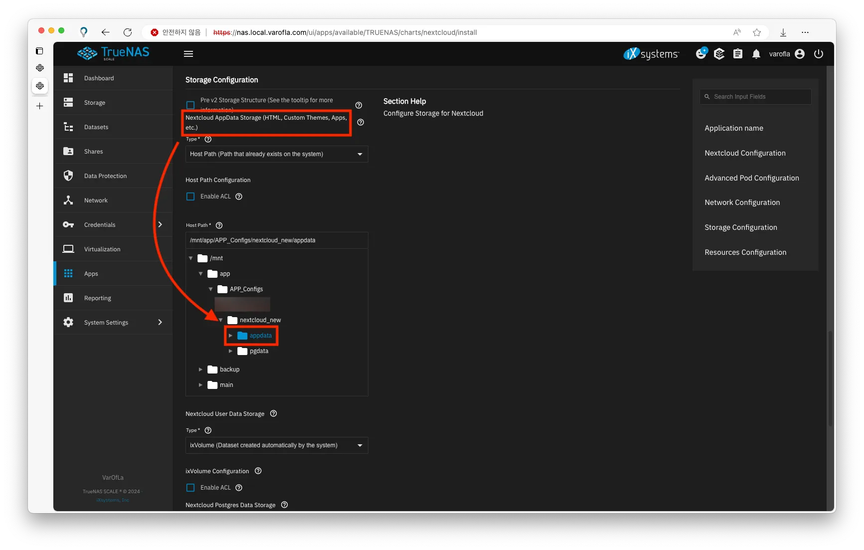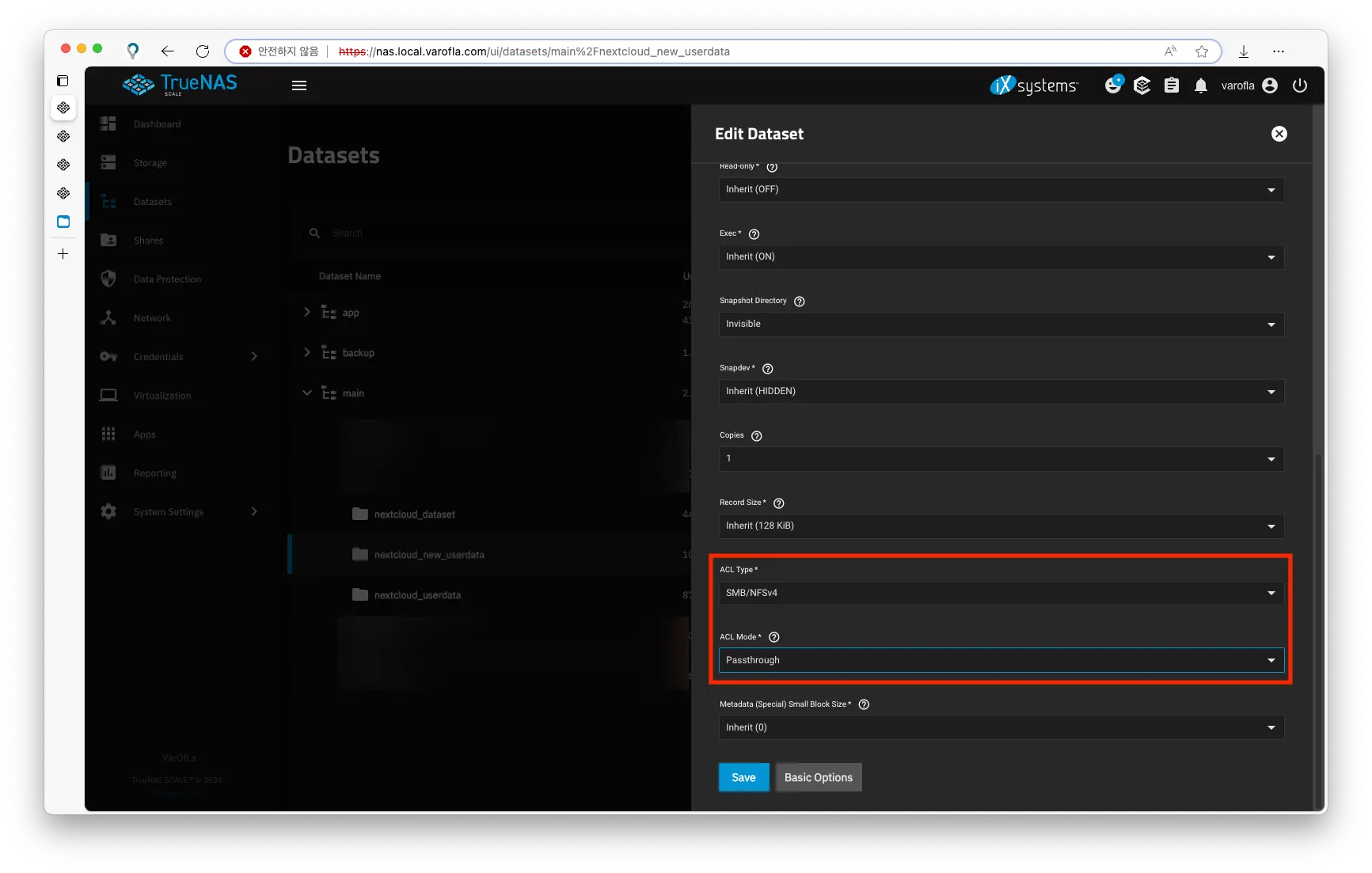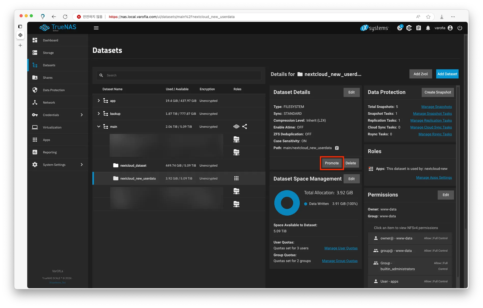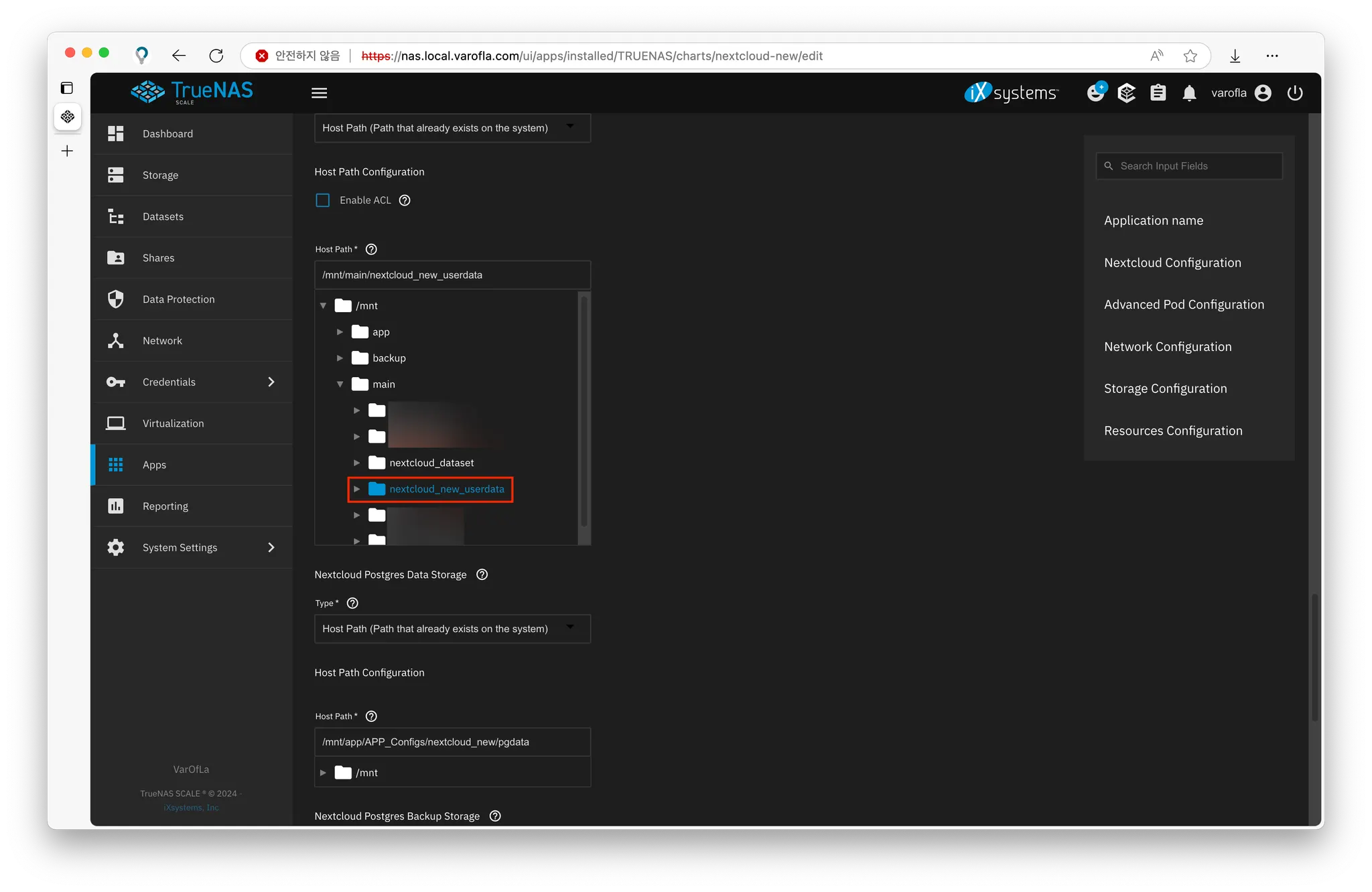 마지막으로 Nextcloud의 Nextcloud User Data Storage를 복사한 데이터셋으로 변경했습니다.