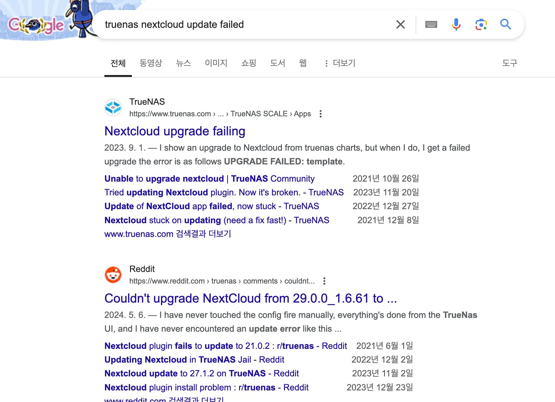 오픈소스 소프트웨어를 오래 사용하다 보면 어느센가 소리 소문 없이 업데이트가 끊기거나, 아니면 메이저 업데이트로 인해 시스템이 고장 나 버리곤 합니다. Nextcloud도 예외는 아니었죠. (물론, 이건 TrueNAS쪽 과실이긴 합니다.