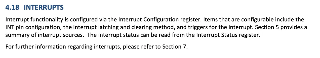 이전 센서와 마찬가지로 인터럽트를 지원합니다. 인터럽트를 활용하면 조금 더 효율적으로 CPU 자원을 아낄 수 있습니다.