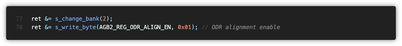 I2C Slave Device의 ODR을 설정하였습니다. 글을 쓰면서 확인했는데, 만약 자이로 센서나 가속도 센서가 켜진 경우 자이로→가속도 순으로 ODR을 따라가기 때문에 I2C_MST_ODR_CONFIG를 따로 설정할 필요가 없다고 하네요.