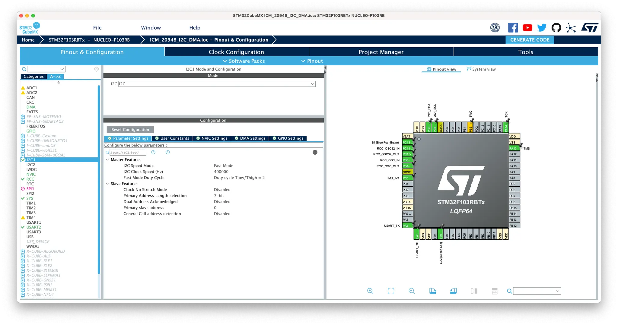 NUCLEO-F103RB | ICM-20948 |