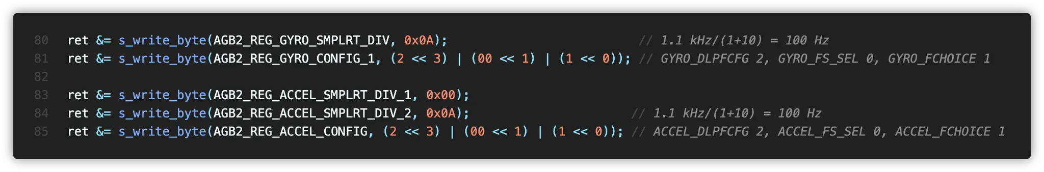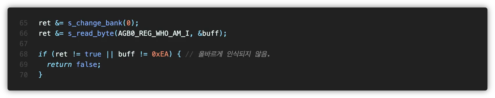 여기까지 했으면 통신 결과를 확인하고 문제가 없다면 s_is_imu_init 을 true로 저장해둡니다.