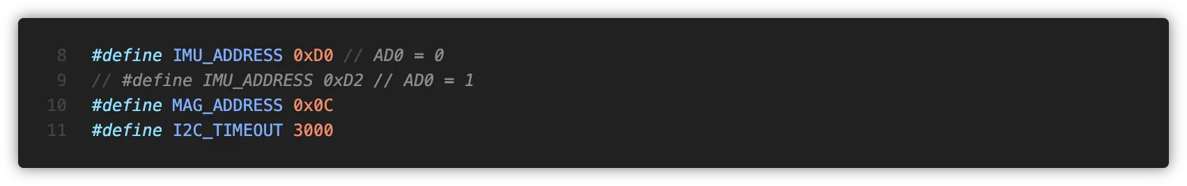 센서의 주소와 I2C 타임아웃을 정의했습니다.