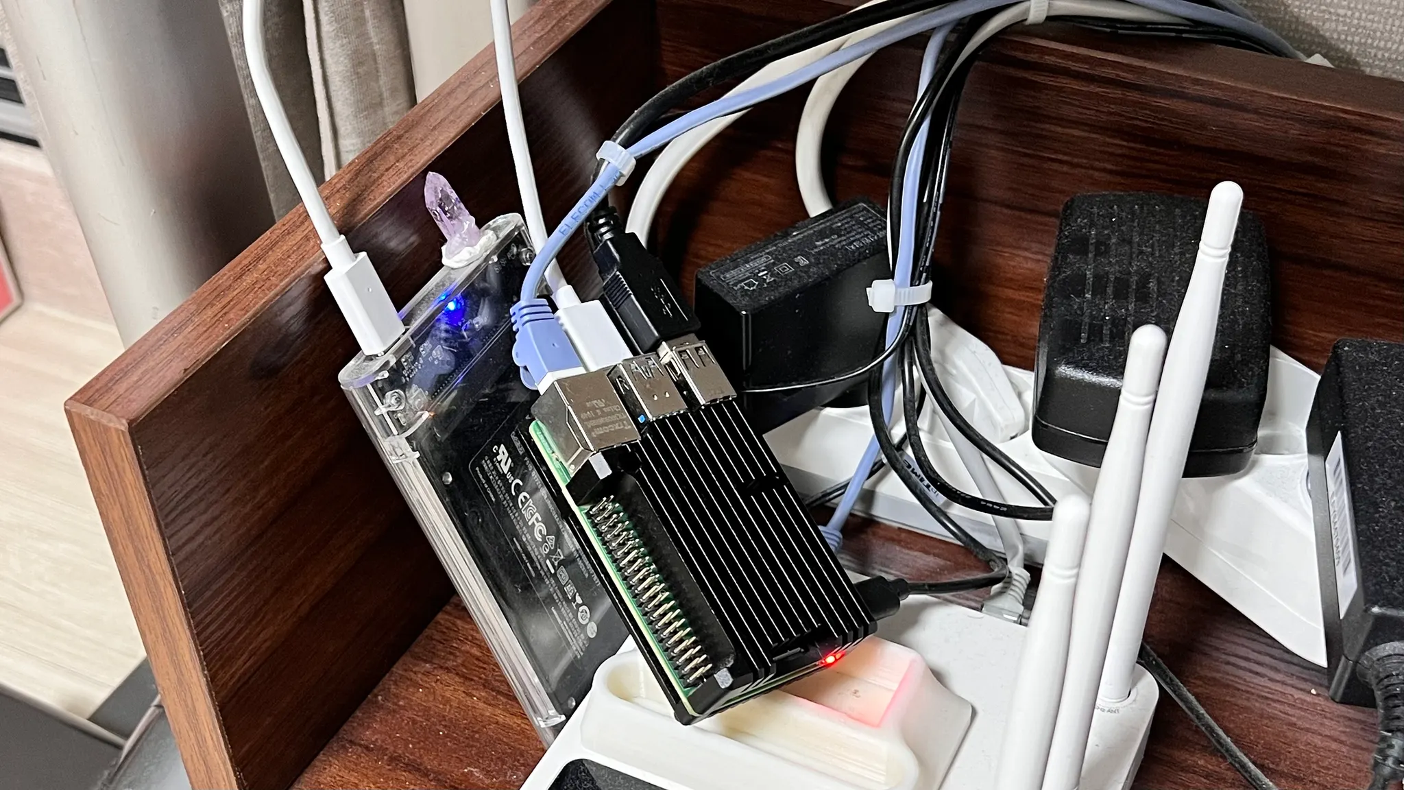 개인적으로으로 쿨링팬 없는 시스템을 선호하여 커다란 히트싱크를 붙여두고 3D프린터로 트레이를 만들어 부팅 디스크와 함께 공유기 위해 꽂아뒀었는데요, 여름철마다 자기 자신의 열에 공유기의 열까지 더해져 고생했는지 최근 들어 뻗어버리는 현상이 자주 발생하게 되었습니다.