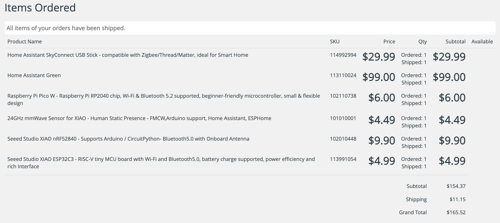 Home Assistant Green 이외에도 Matter를 사용해보기 위해 SkyConnect를, 재실감지를 위한 mmWave 센서 등을 함께 충동구매했지요