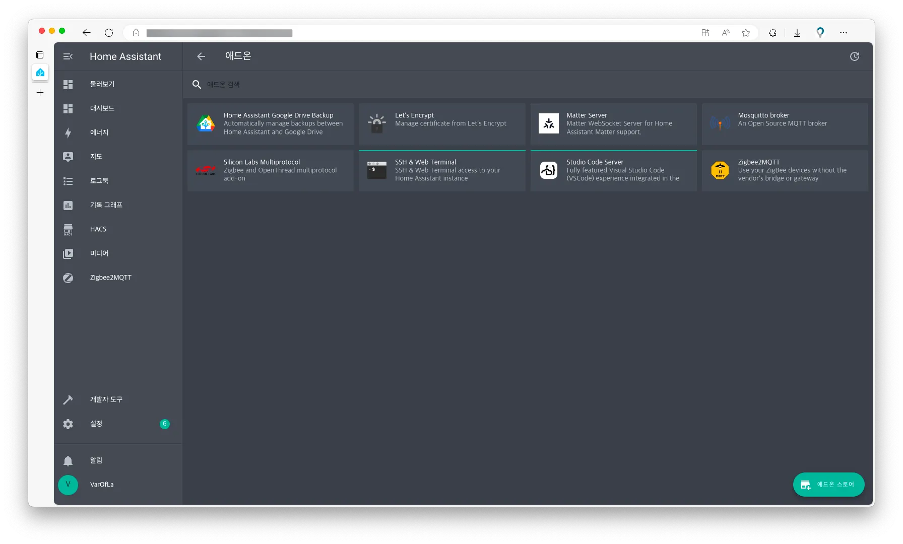 애드온을 실행하면 됩니다. HA를 재시작할 때를 대비해 자동 시작을 켜두었습니다.