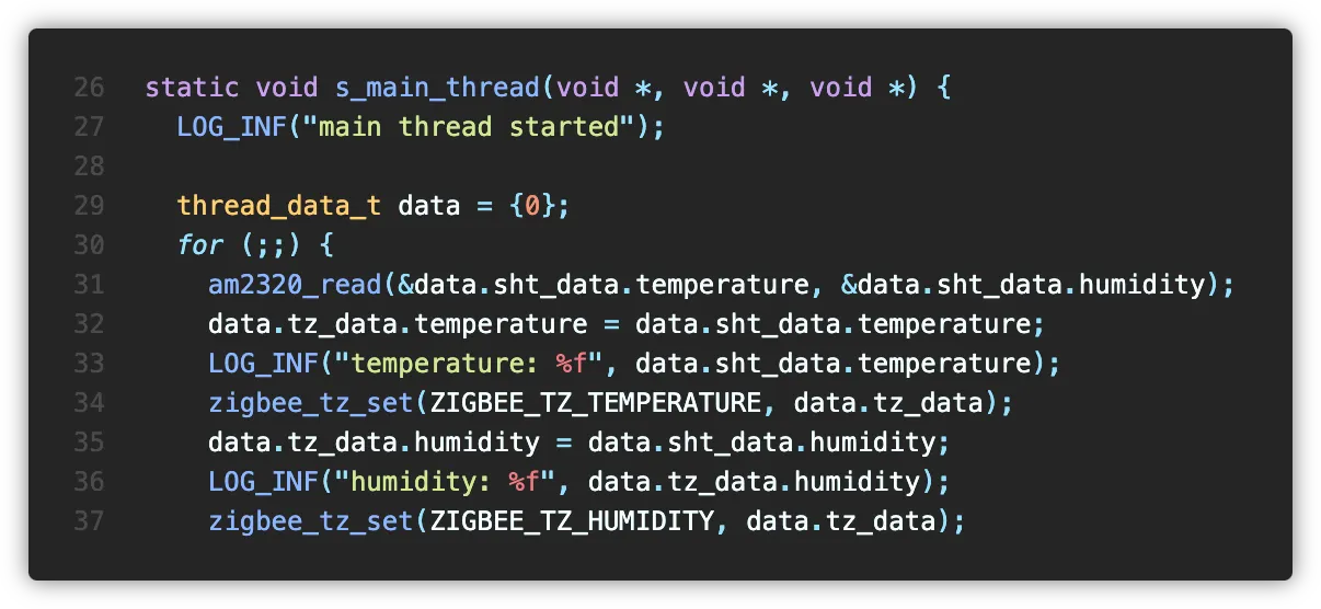 Main Thread의 일부는 위와 같습니다. 센서 데이터를 읽고 ZigBee로 데이터를 던져주죠.