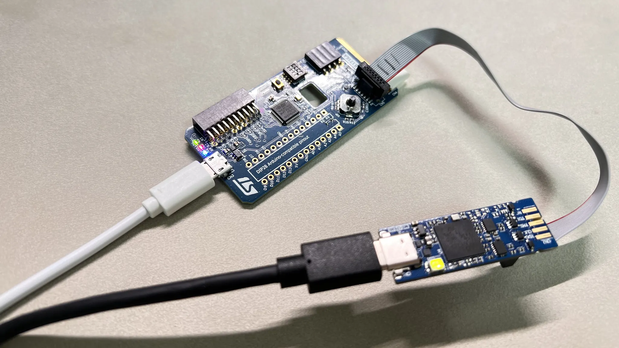전원과 디버거 USB를 연결한 후 펌웨어를 업로드하였습니다. 의도한 대로 잘 작동하네요.