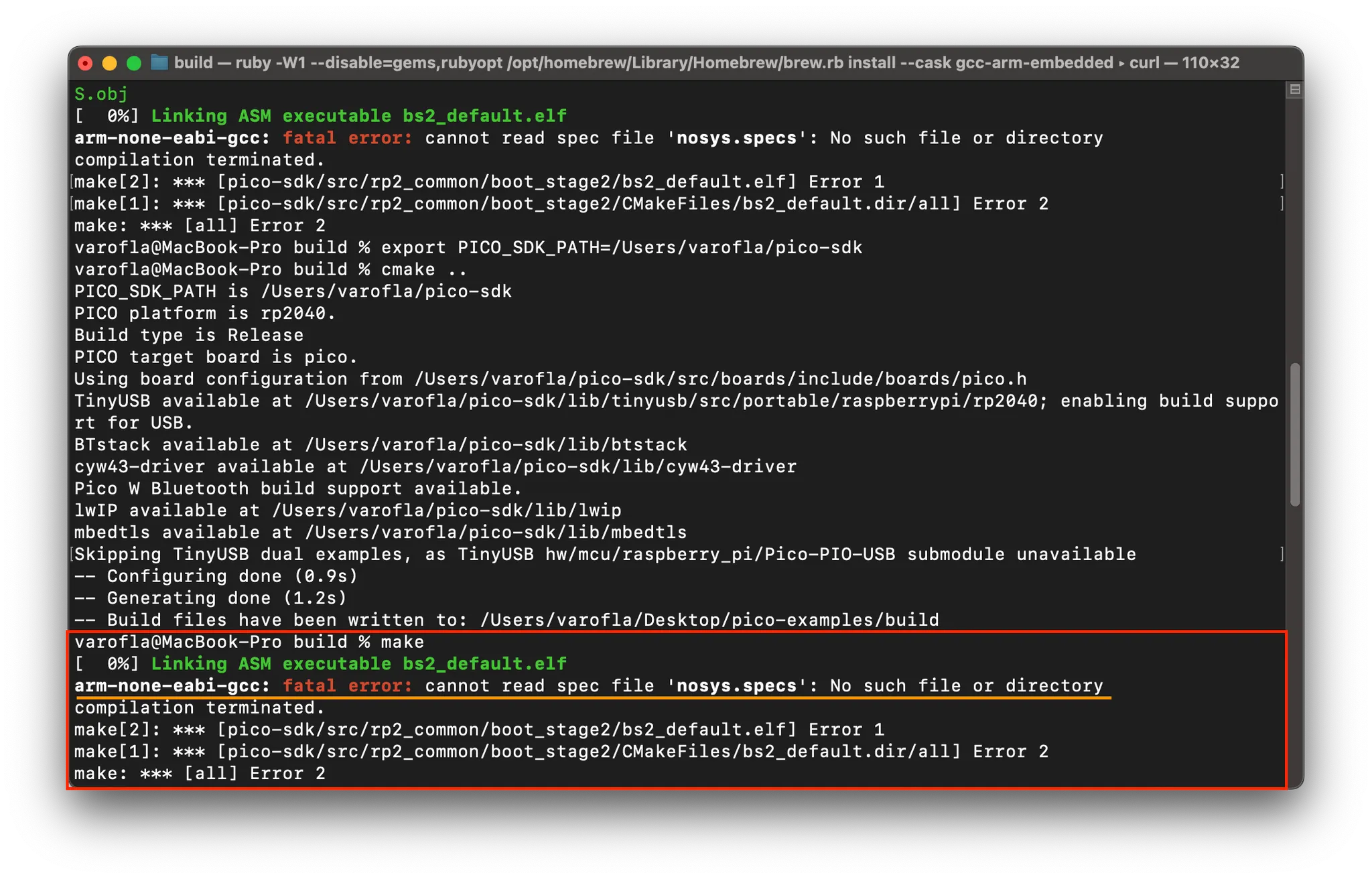 오랜만에 Pico-SDK를 사용할 일이 생겨 예제를 다시 빌드해보았는데요, 빌드 과정에서 이런 오류가 발생했습니다.