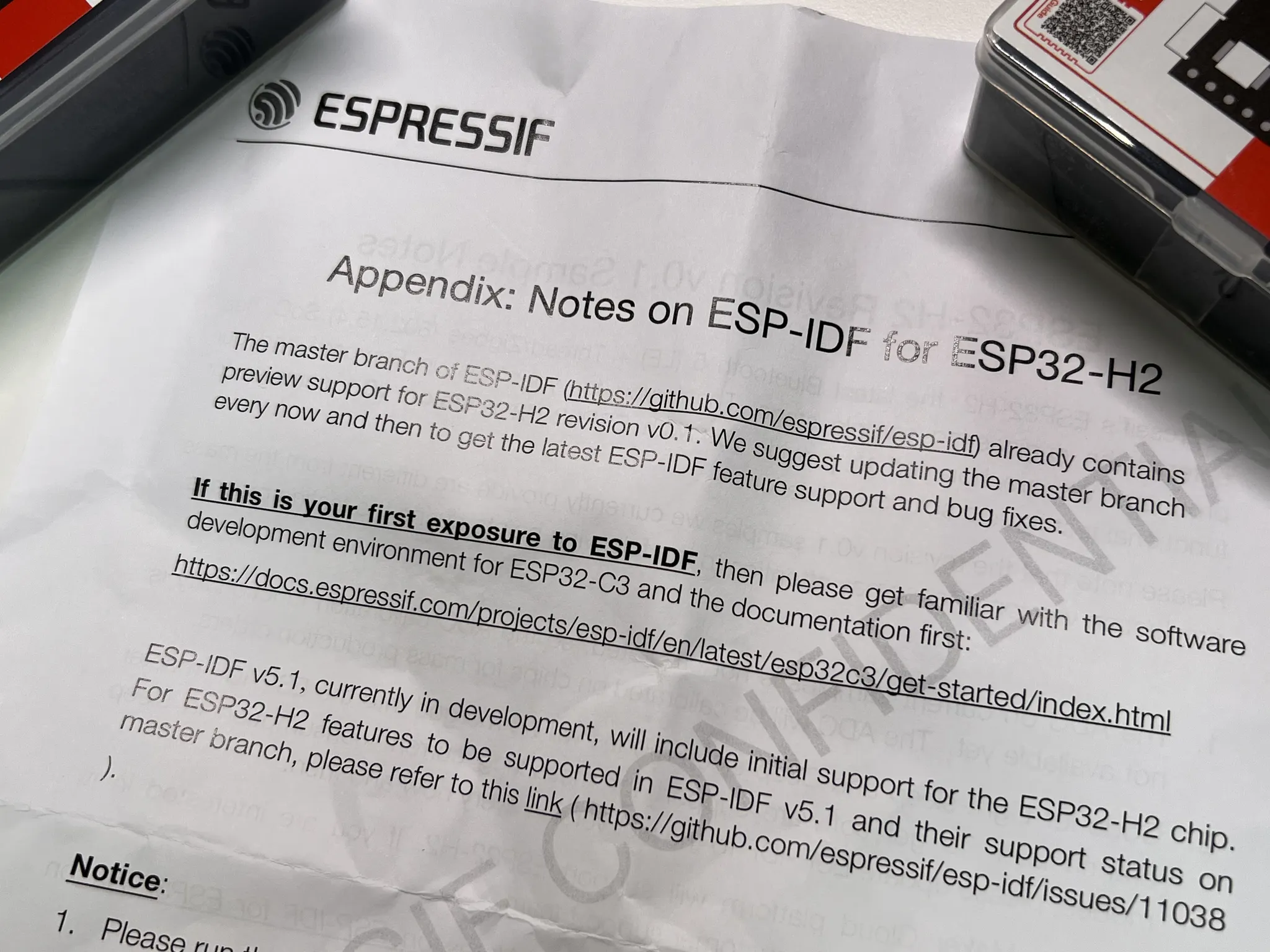 현재 ESP-IDF git 리포지토리의 master 브랜치에서 개발자 샘플인 ESP32-H2 v0.1를 미리보기로 지원하고 있음. 버그픽스가 주기적으로 이루어지니 자주 pull할 것.