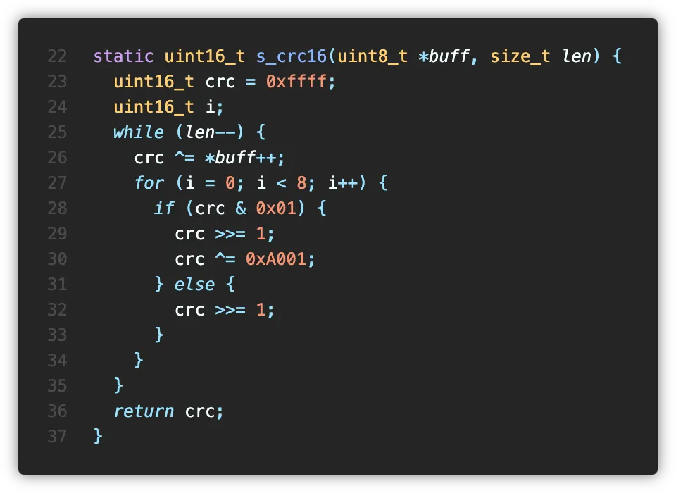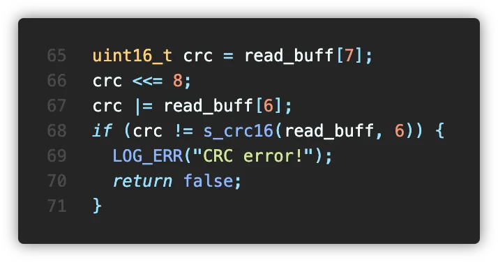 데이터시트의 예시대로 CRC 체크 코드를 작성하고,