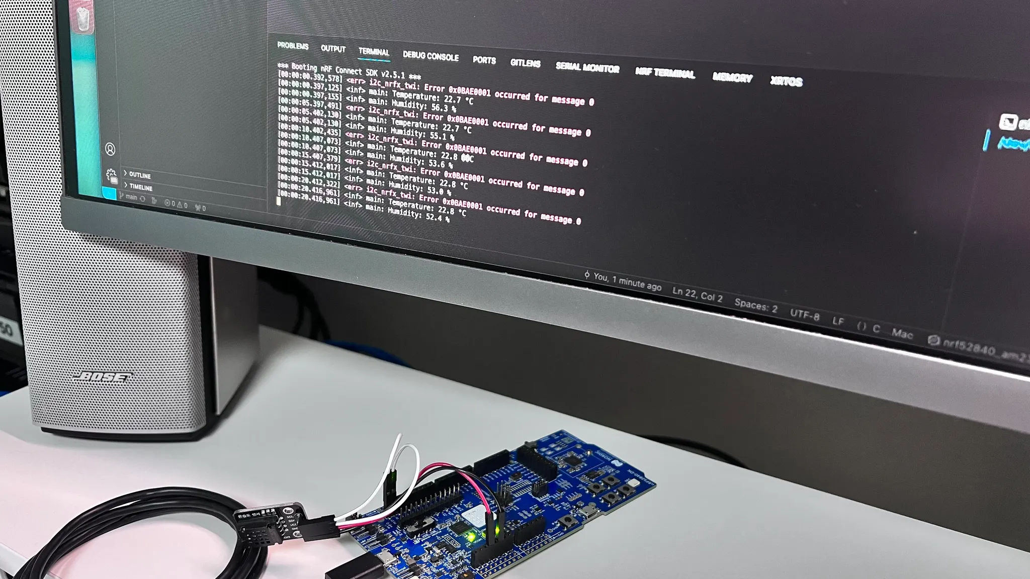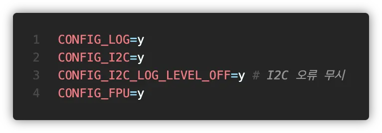 앞에서도 언급했듯이 센서를 깨우는 과정에서 오류가 발생하는데요, Kconfig의 CONFIG_I2C_LOG_LEVEL_OFF를 켜주면 오류가 무시되기는 합니다.