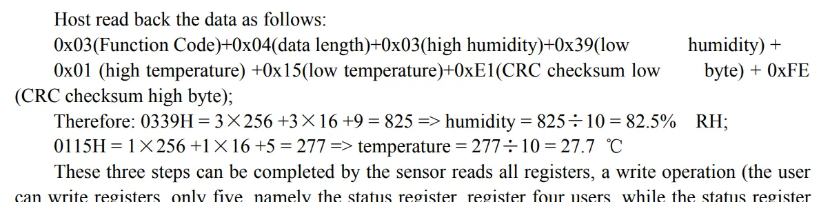 이때 반환되는 데이터는 명령 종류인 읽기 코드(0x03) + 길이(0x04) + 읽은 데이터(len=4) + CRC low + CRC high 순입니다.