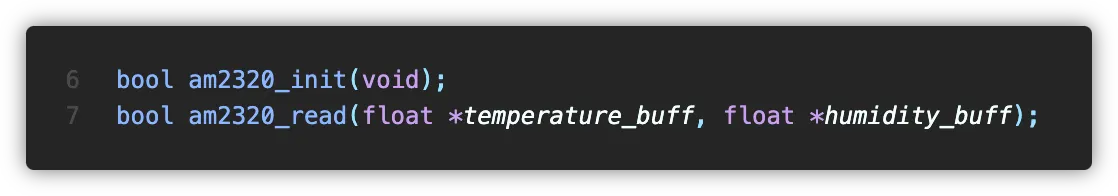 bool am2320_read(float *, float *) : 온습도 데이터 취득