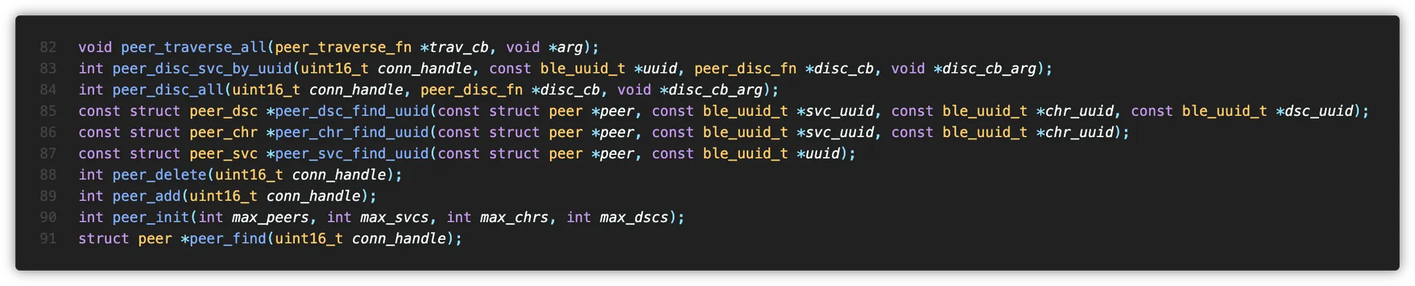 함수가 정의된 경로로 찾아가 함수들을 살펴보니 Connection, Service, Characteristic의 NimBLE Handler를 관리해주는 역할을 하고 있었습니다.
