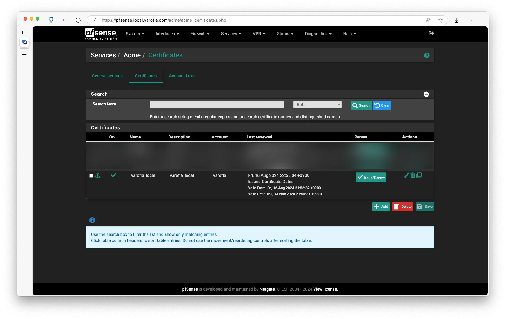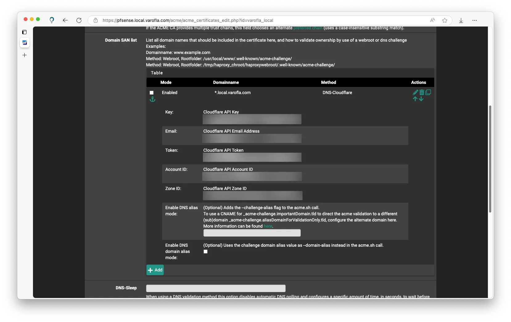 pfSense는 인증서를 쉽게 관리할 수 있도록 도와주는 ACME 패키지를 지원합니다. ACME에 CloudFlare API 키를 집어넣으면 자동으로 Let's Encrypt DNS challenge를 처리합니다.