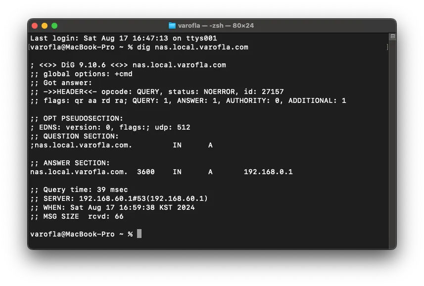 NAS의 경우 nas.local.varofla.com, HomeAssistant의 경우 ha.local.varofla.com 이런식이죠. 외우기 편리하고 특히 블로그 포스팅에서 개인 서비스의 URL이 노출될 일이 없다는 점이 장점이였습니다.