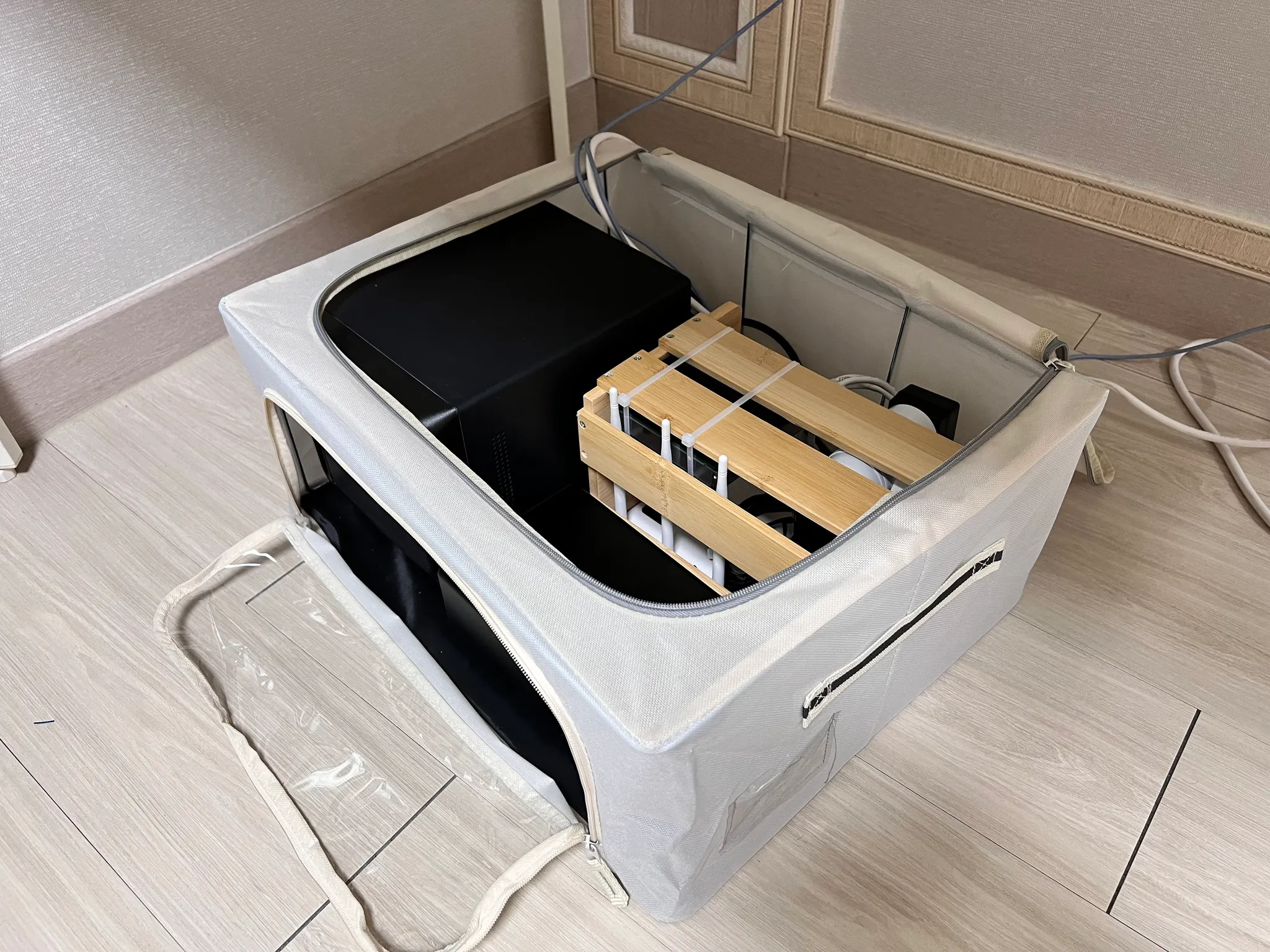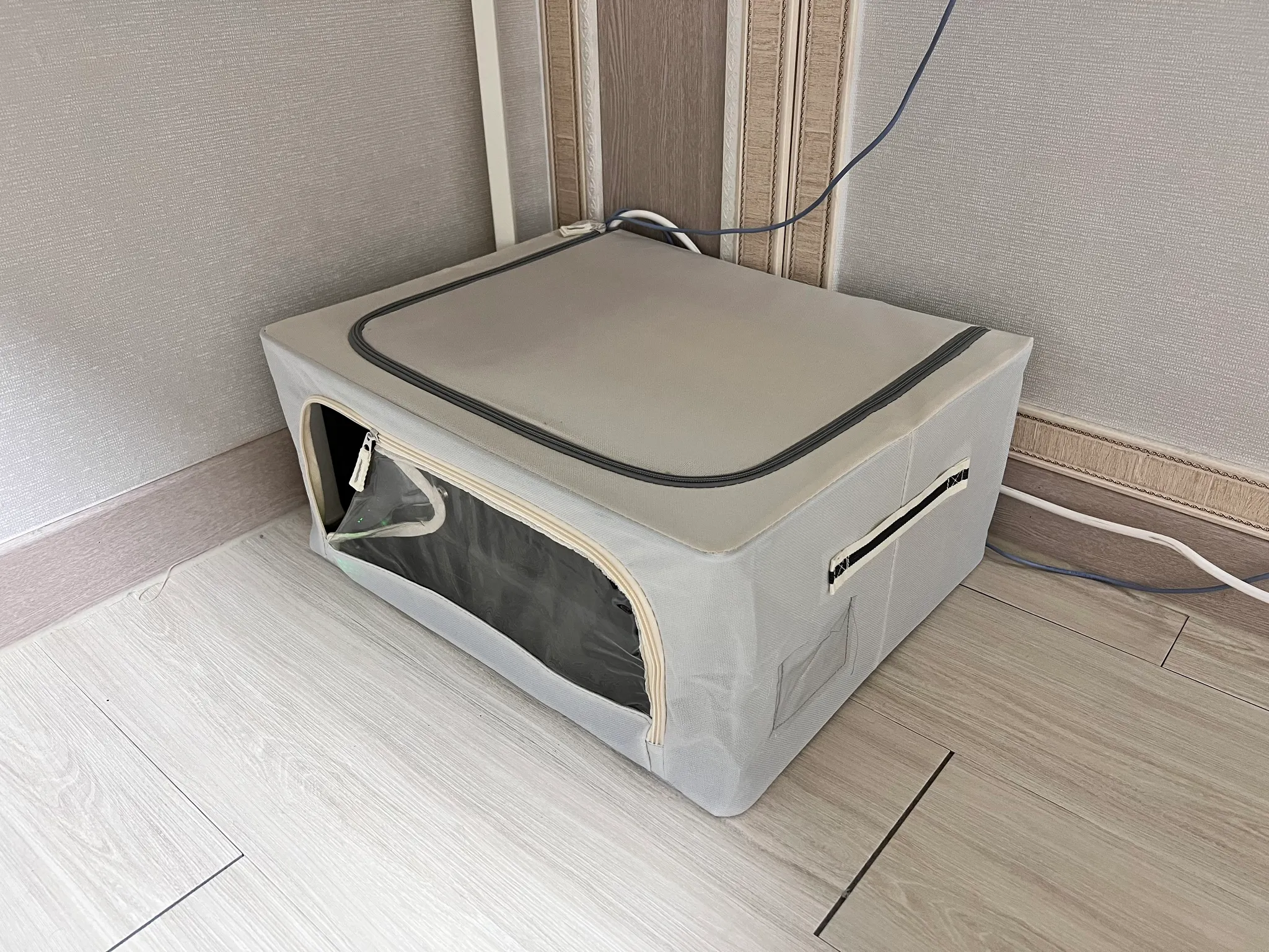 급한대로 근처 다이소에서 천 재질의 정리함을 사서 NAS와 나머지 기기를 다 넣어봤지만, 소음이 줄어드는건 잠시 발열로 쿨링팬이 더 심하게 돌기 시작했습니다