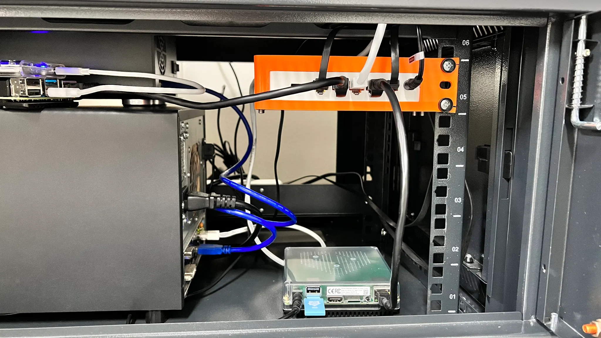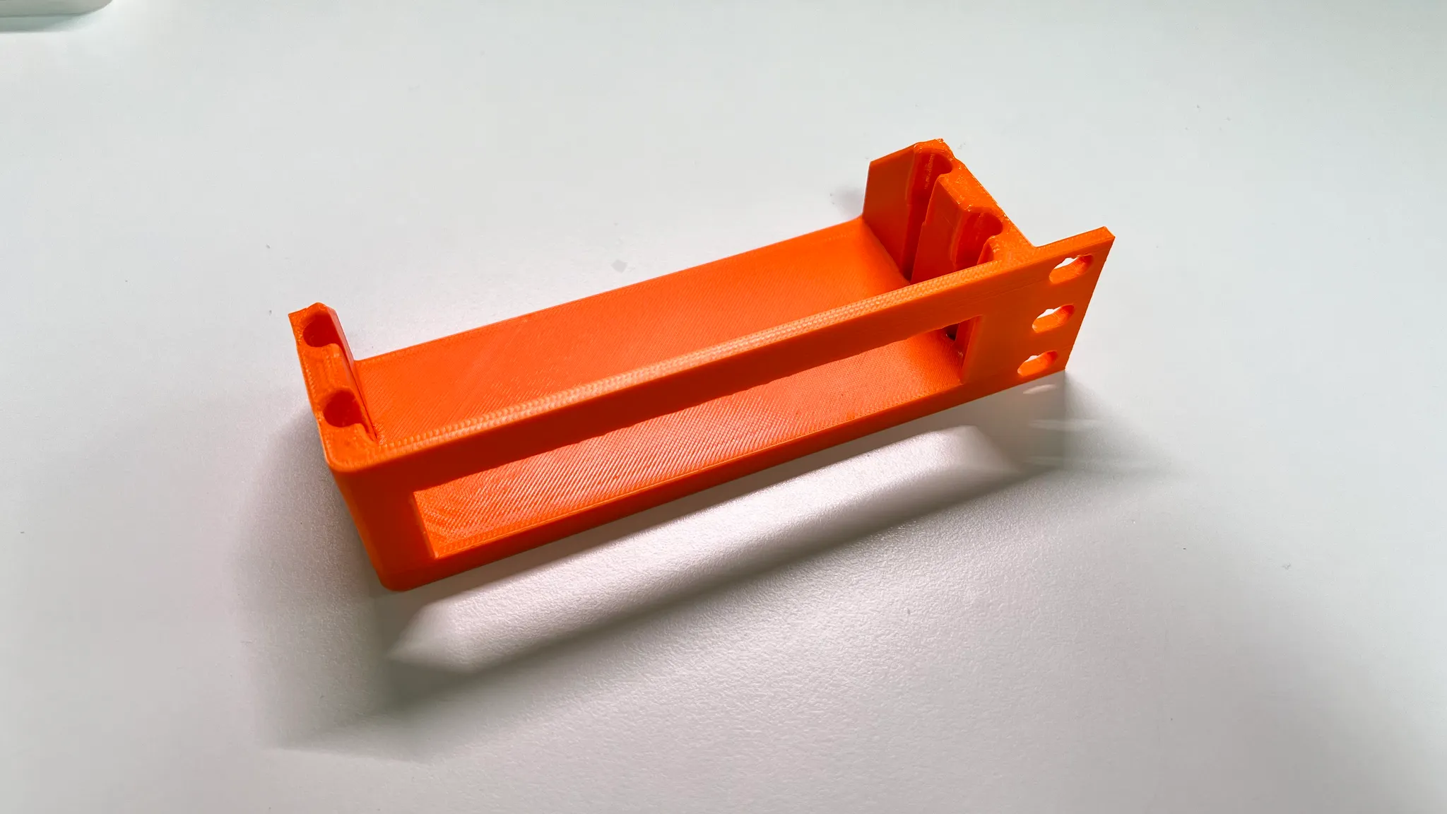 허브랙에 연결하면 이런 느낌입니다. 랙과 연결되는 부위를 얇게 설계했는지 나사쪽에 크랙이 갔네요. (아래 공유할 파일에는 수정되어 있습니다)