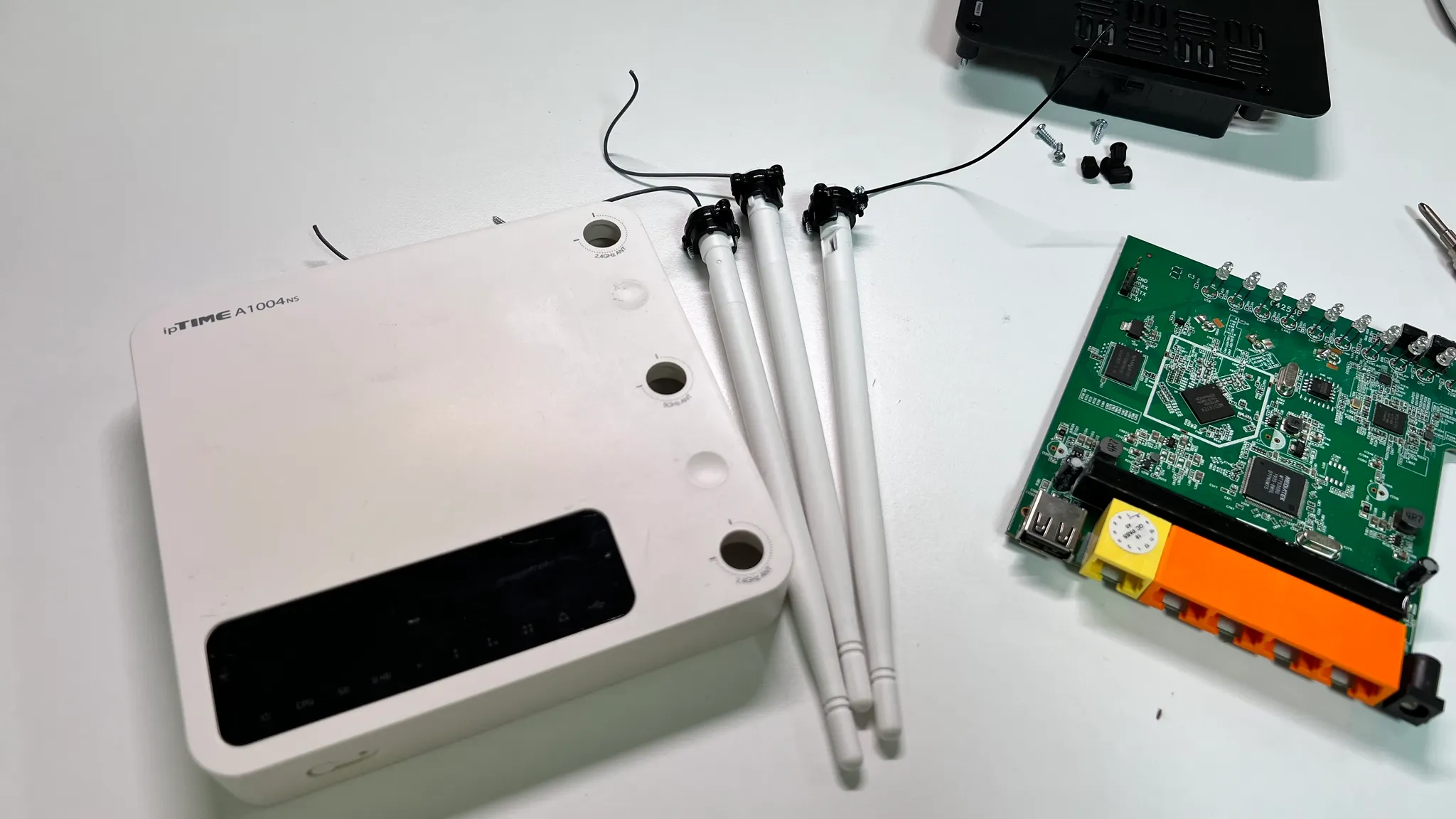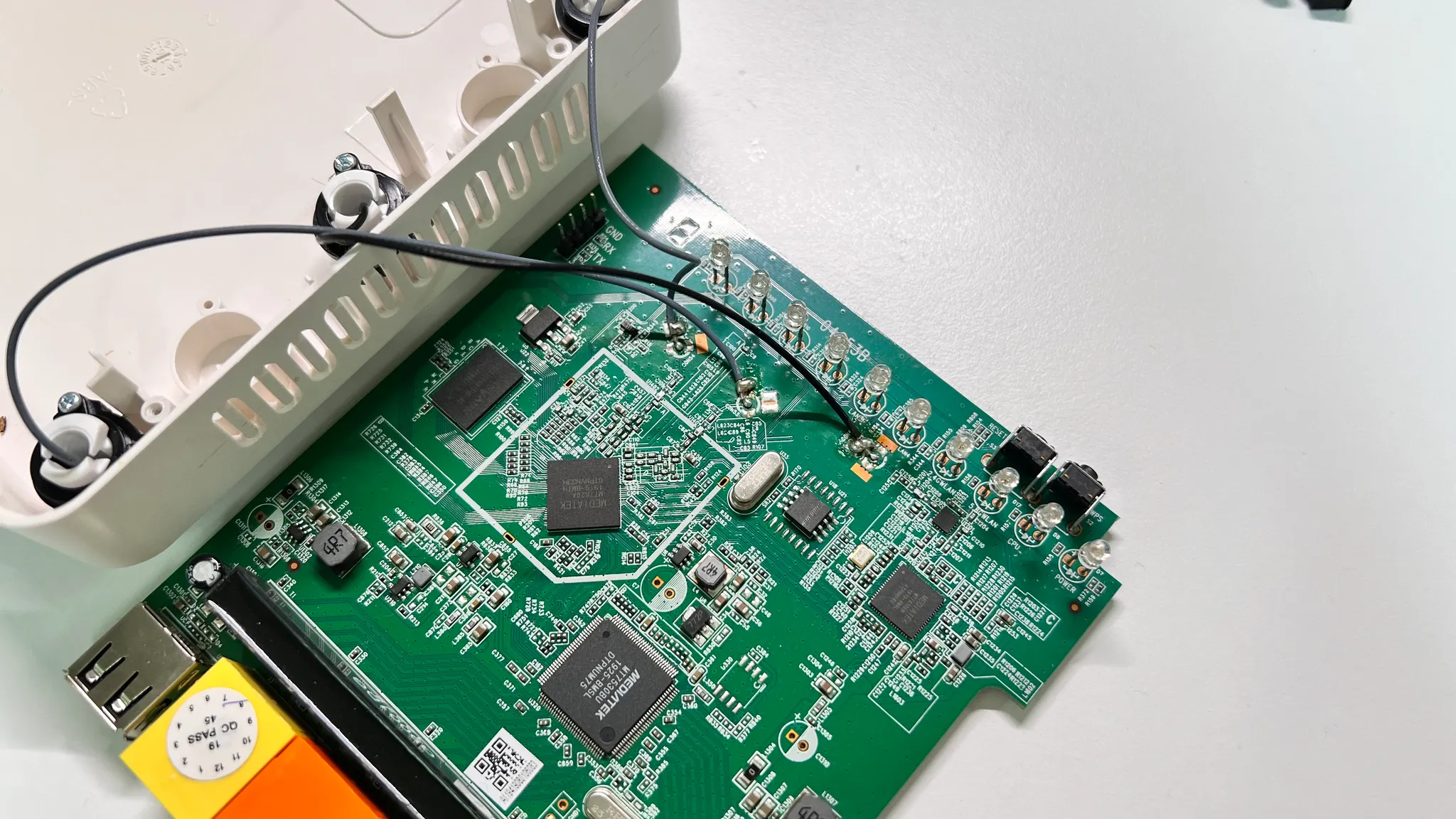 공유기를 분해한 후 안테나와 연결된 케이블을 잘라주고 안테나를 분리했습니다.