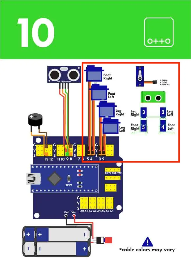 몸체의 서보모터에 다리를 결합합니다.