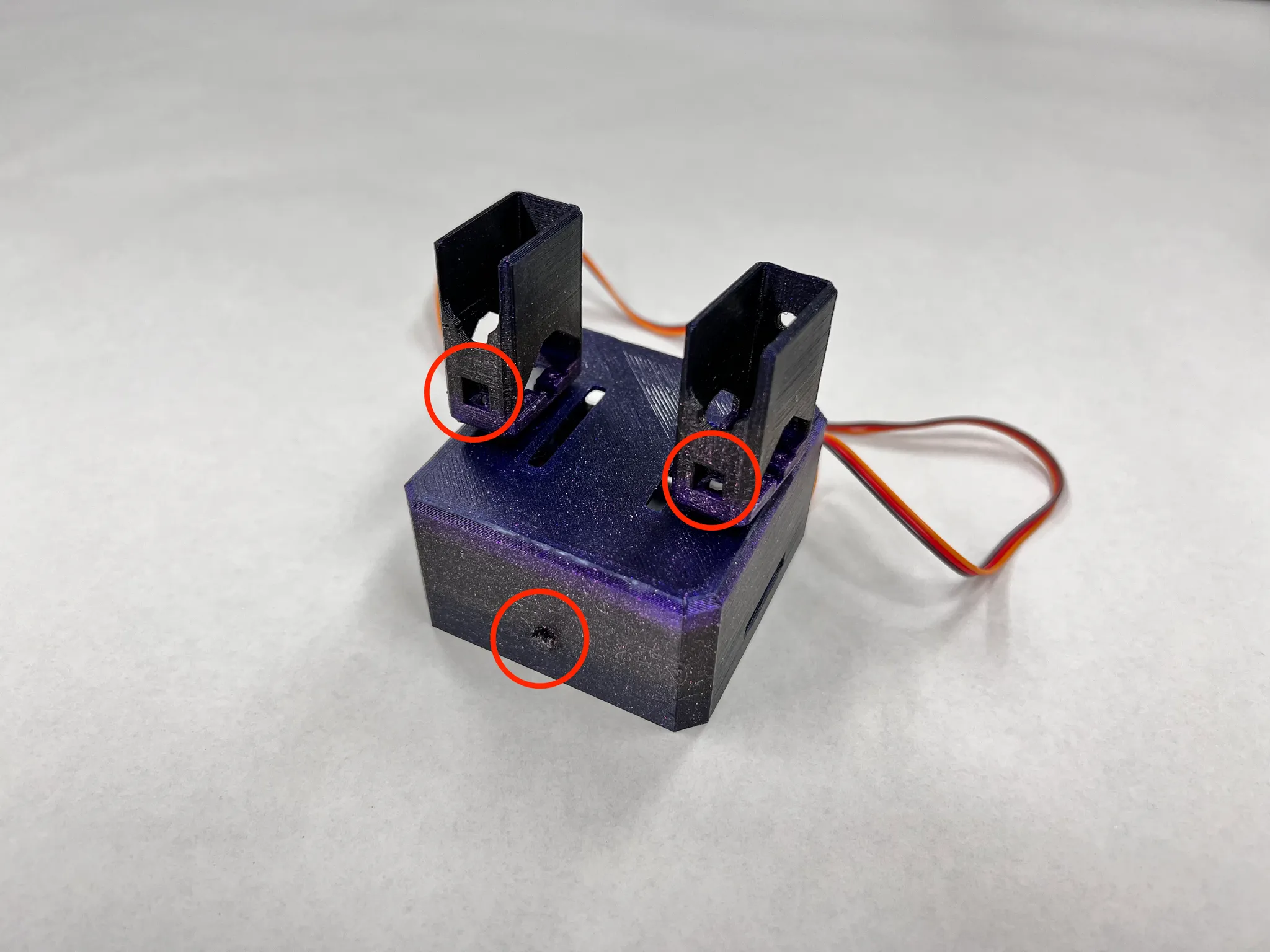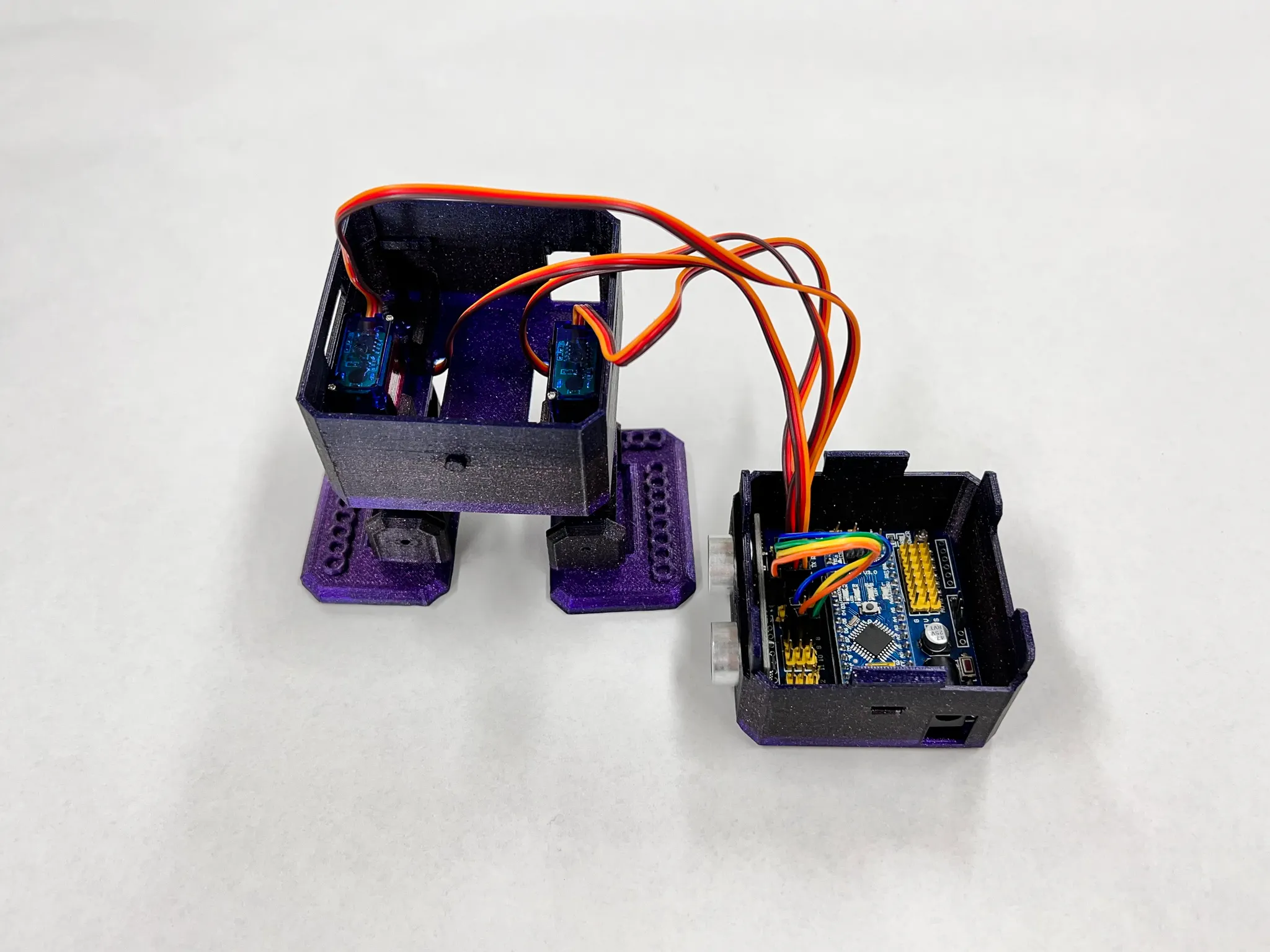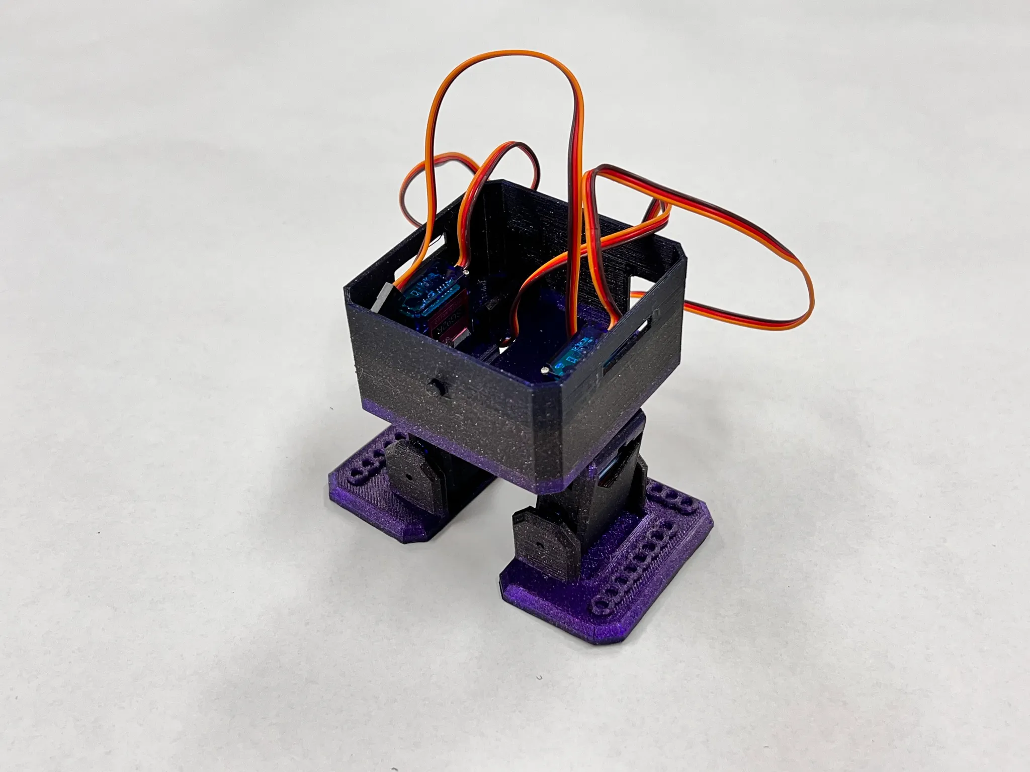다리와 서보모터 사이에 유격이 존재합니다. 순간접착제를 활용해 서보모터 혼과 다리 부품을 고정하면 해결할 수 있으나, 이대로 두어도 큰 문제는 없습니다.