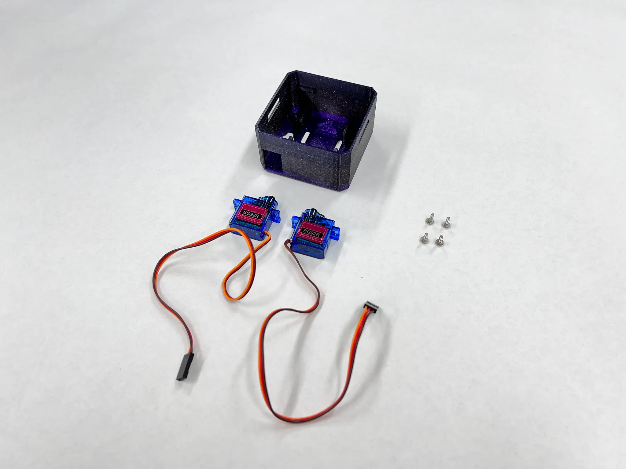 몸체, 서보모터 2개, 큰 나사 4개를 준비합니다.
