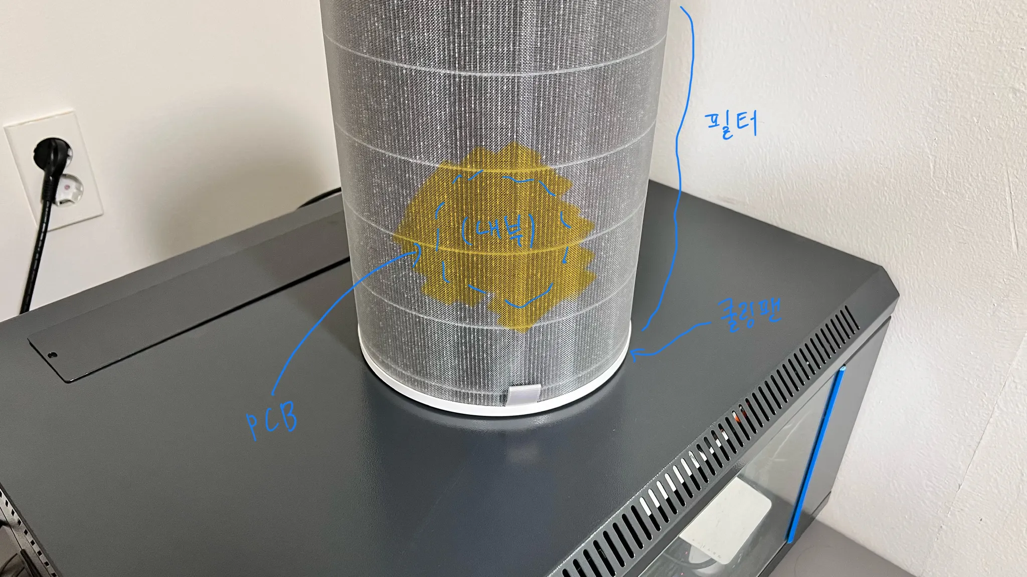 전혀 예상하지 못한 큰 문제가 있었는데요, 처음 컨셉에서는 쿨링팬을 눕혀서 필터 속에 넣어버리려 했지만..