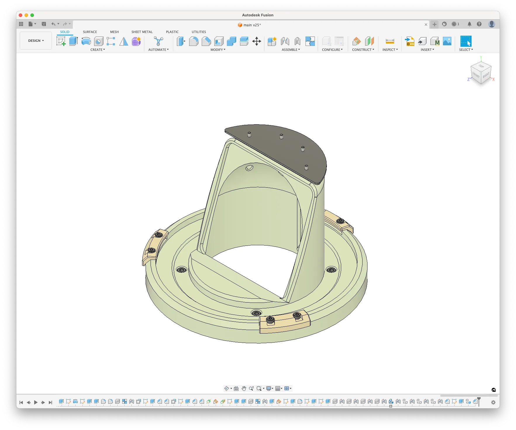 틸트될 것을 고려해 몸체에 마운팅되는 부분은 약간 경사지게 설계해보았습니다.