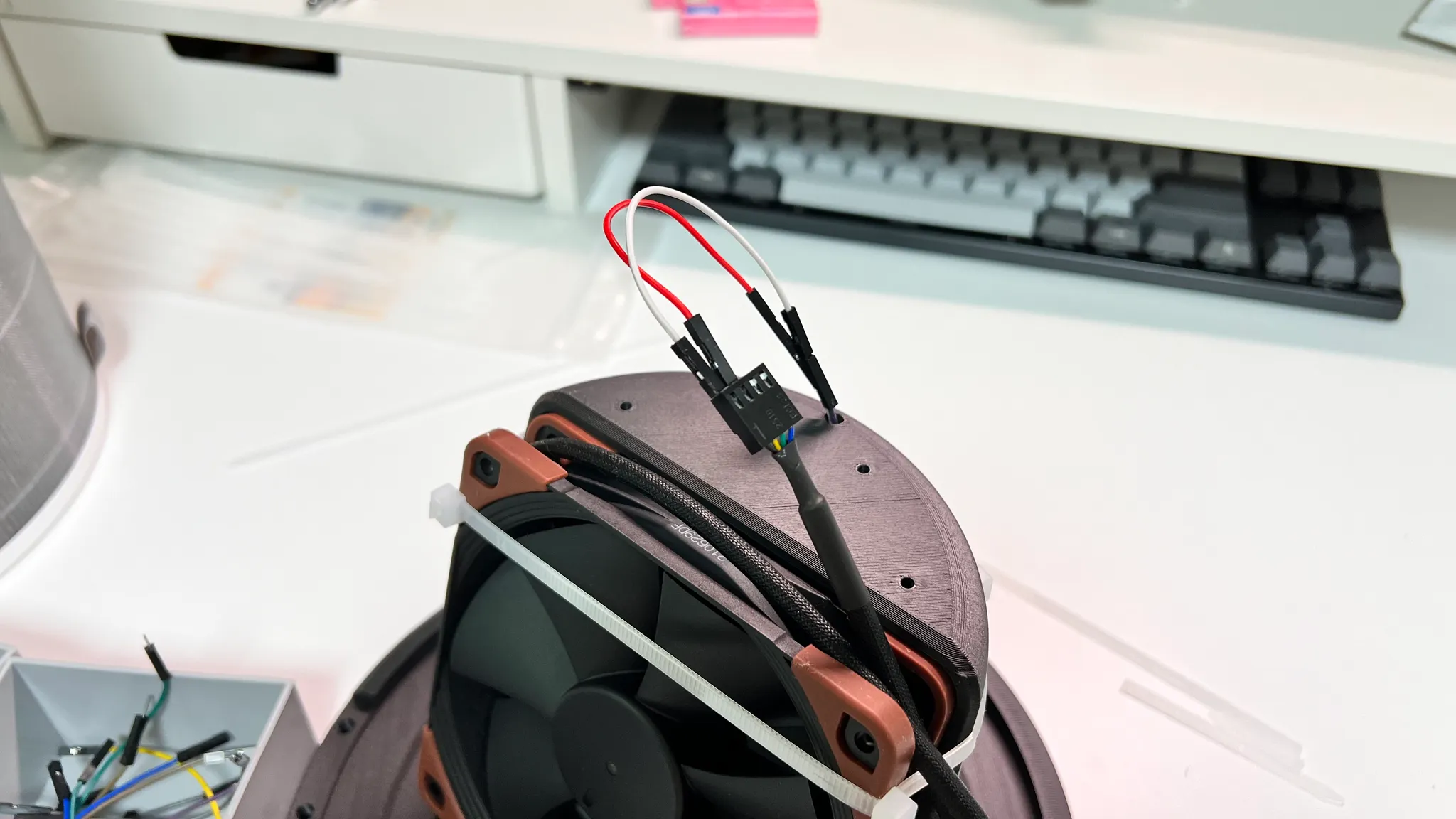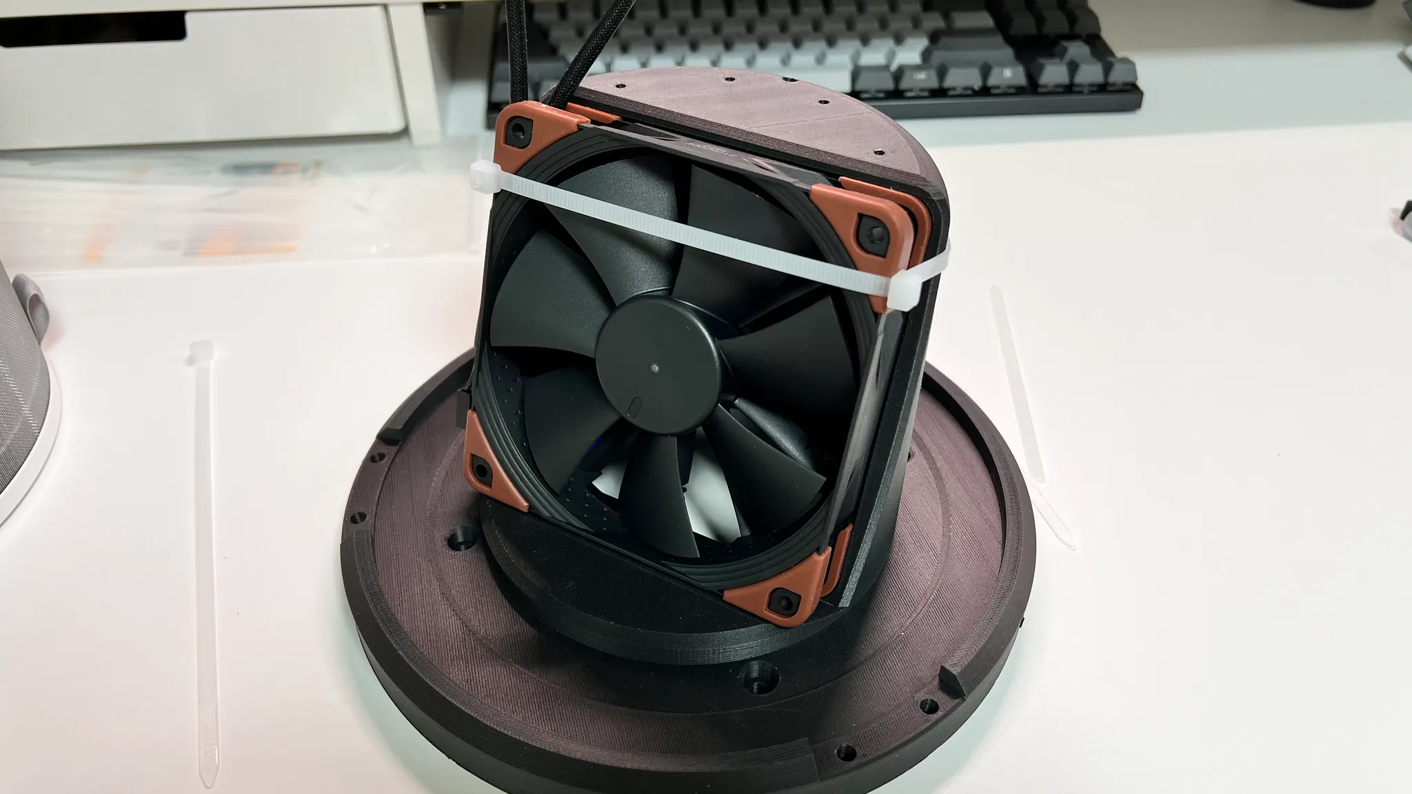 귀차니즘으로 케이블타이를 사용했는데, 쿨링팬의 고무발 덕분에 생각보다 단단하게 결합되었습니다. 이게 되네 2