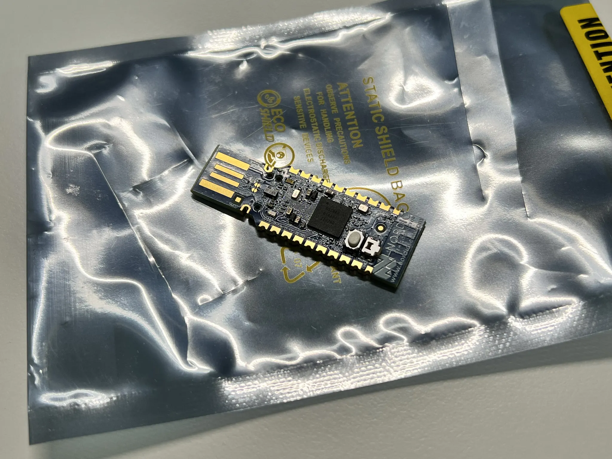 전면에는 부품, 두개의 스위치, USB 연결을 위한 단자가 보이고 뒷쪽에는 디버깅을 위한 단자 등이 보이네요. 사이드에는 GPIO나 외부 전원 등을 위한 castellated 단자가 보입니다.