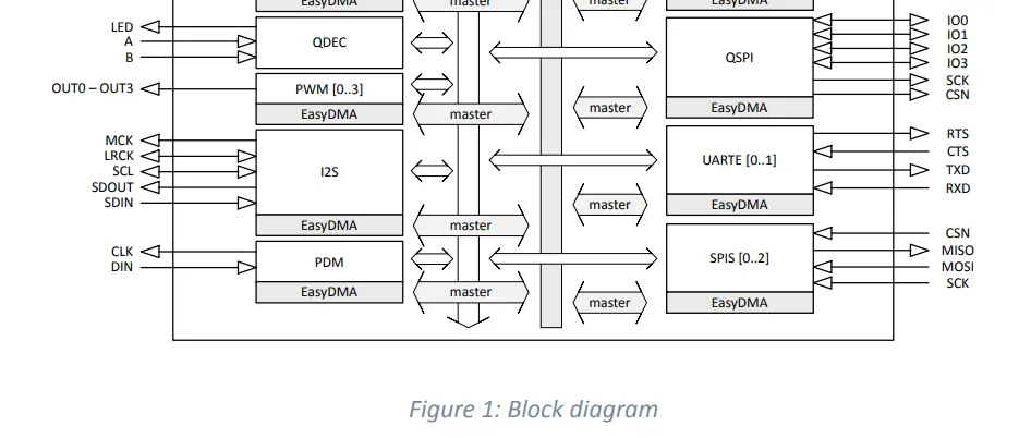여느 MCU에서 볼 수 있던 Peripheral들이 보이는데요, 특이하게 Peripheral 마다 EasyDMA가 붙어있는것이 보입니다. DMA는 DMA인데, easy하다는 것일까요? ㅋㅋ 나중에 개발보드를 사용할 일이 생기게 되면 꼭 사용해봐야겠습니다.