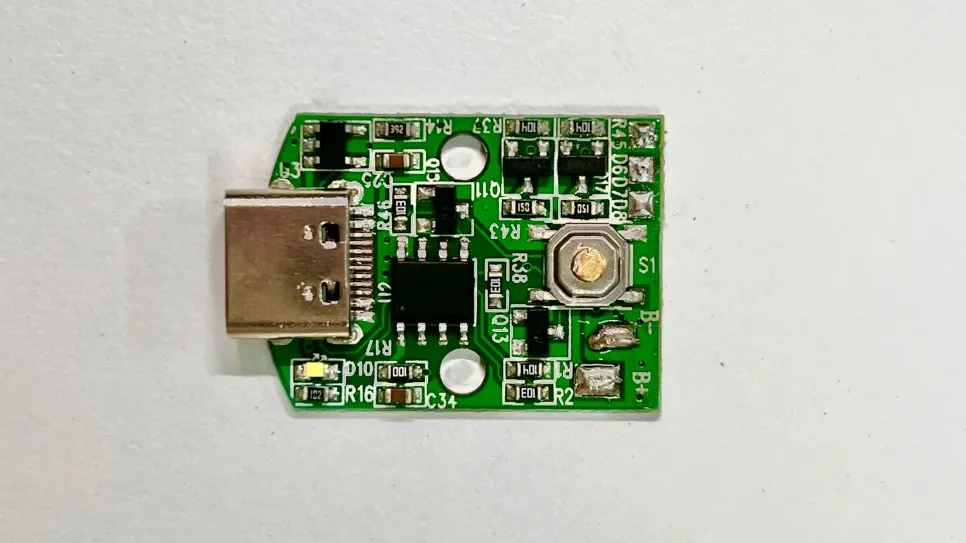 우선 배터리 전원이 uC로 직결되는 걸 보아 USB 위쪽의 부품은 배터리 충전과 관련이 있는 것 같습니다. 다행히 대부분의 중국산 조명에서나 하는 USB 5V를 배터리에 바로 때려 박도록 설계하지는 않은 것 같습니다.